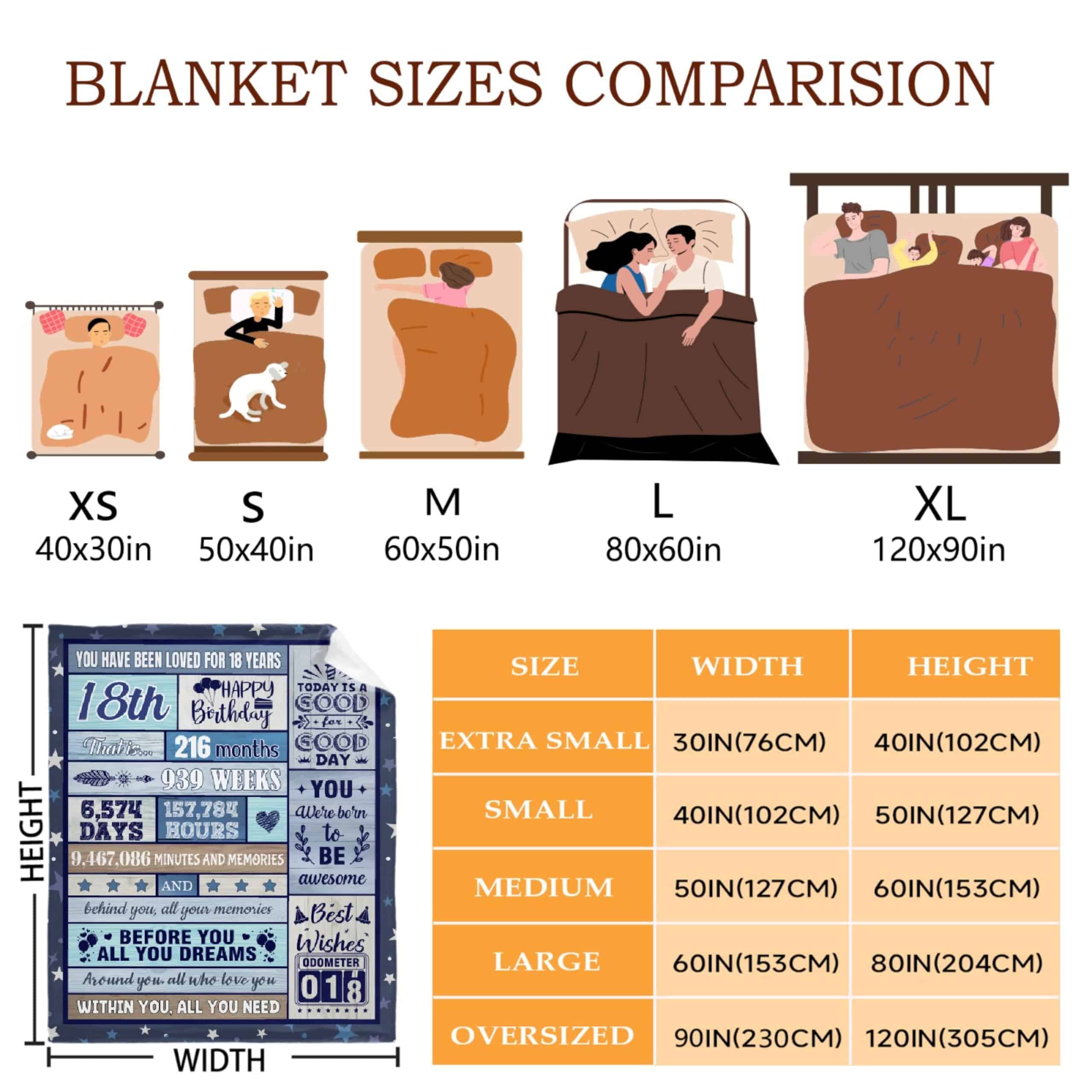 Características de materiales premium Hecho de material de felpa de microfibra premium para una mejor transpirabilidad y comodidad, es como dormir bajo una nube, suave y ligero sin ser voluminoso, manteniendo el calor que necesitas y promoviendo un sueño reparador. Puedes elegir el tamaño adecuado según tus necesidades, o puedes comprar múltiples tamaños para satisfacer las necesidades de tu familia (30×40) pulgadas adecuado para la siesta de niños pequeños y niños. (40×50) pulgadas adecuado para mantas de exterior, camping y viaje. (50×60) pulgadas adecuado para mantas de sofá. (60×80) pulgadas adecuado para cama y sofá. (90×120) pulgadas adecuado para la familia. Adecuado para las cuatro estaciones y uso multiescena Nuestra manta es tan suave y cómoda que puedes tomar una siesta en tu cama, en el sofá, en un viaje de campamento, o en la oficina. No es solo una manta, es una hermosa pieza decorativa. Agrega textura extra a tu decoración y transforma tu habitación en un espacio acogedor con estos diseños. Regalo perfecto El diseño de 18 cumpleaños en estas divertidas mantas de felpa hará que tus padres, amantes, hijos, familiares y amigos se sientan animados e interesantes, también es un regalo ideal para aniversario, Día de San Valentín, Día de la Madre, Día del Padre, Día del Niño, Pascua, Halloween, Día de Acción de Gracias, Navidad, o cualquier evento festivo. Fácil de limpiar y duradero Por favor, limpia tu manta una vez antes de usarla, lavado a máquina, agua fría o tibia, por favor recuerda no usar agua caliente. Se recomienda secar en un lugar ventilado después de lavar y mantenerla seca durante el almacenamiento. Servicio satisfactorio Si tienes alguna pregunta, no dudes en contactarnos, te responderemos lo antes posible en un plazo de 24 horas. ¡Feliz compra!