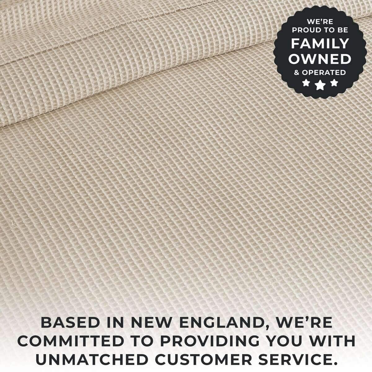 4. Fácil de Lavar: Estas mantas de algodón son fácilmente lavables a máquina en ciclo delicado en frío y secar a baja temperatura. Debido a la naturaleza del tejido de gofre, estas mantas están fabricadas intencionadamente más grandes para tener en cuenta el encogimiento después del primer lavado. Ten la seguridad de que estas mantas ajustarán las medidas correctas después de lavarlas adecuadamente.