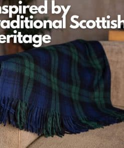 Manta de lana pura 100% estilo escocés Black Watch. Esta manta suave y cálida con borde flecos es perfecta para noches frías, para usar frente al televisor, para picnics o como manta de viaje. Tamaño ideal para envolver alrededor de los hombros o sobre las rodillas. Fabricada con lana, esta manta es duradera y versátil. El tamaño más pequeño también le da un toque de encanto rústico a los espacios más acogedores. Medidas aproximadas de tamaño completo 91cm x 150cm. Los flecos miden aproximadamente 10cm. Visita nuestra tienda para más productos escoceses y regalos escoceses.
