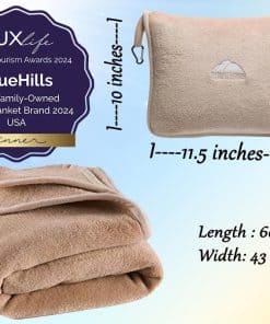 La manta de viaje BlueHills es ideal para mantenerse cálido en diversas situaciones, especialmente durante los viajes en avión. Viene con una funda suave que también sirve como cojín, lo que la hace perfecta para llevar en coche, avión, camping o guardar en casa. La correa para equipaje de mano facilita su transporte y el clip para mochila permite sujetarla a cualquier mochila o equipaje. Además, puede usarse como manta de sofá al medir 60» de largo por 43» de ancho. ¡El regalo perfecto para cualquier viajero!