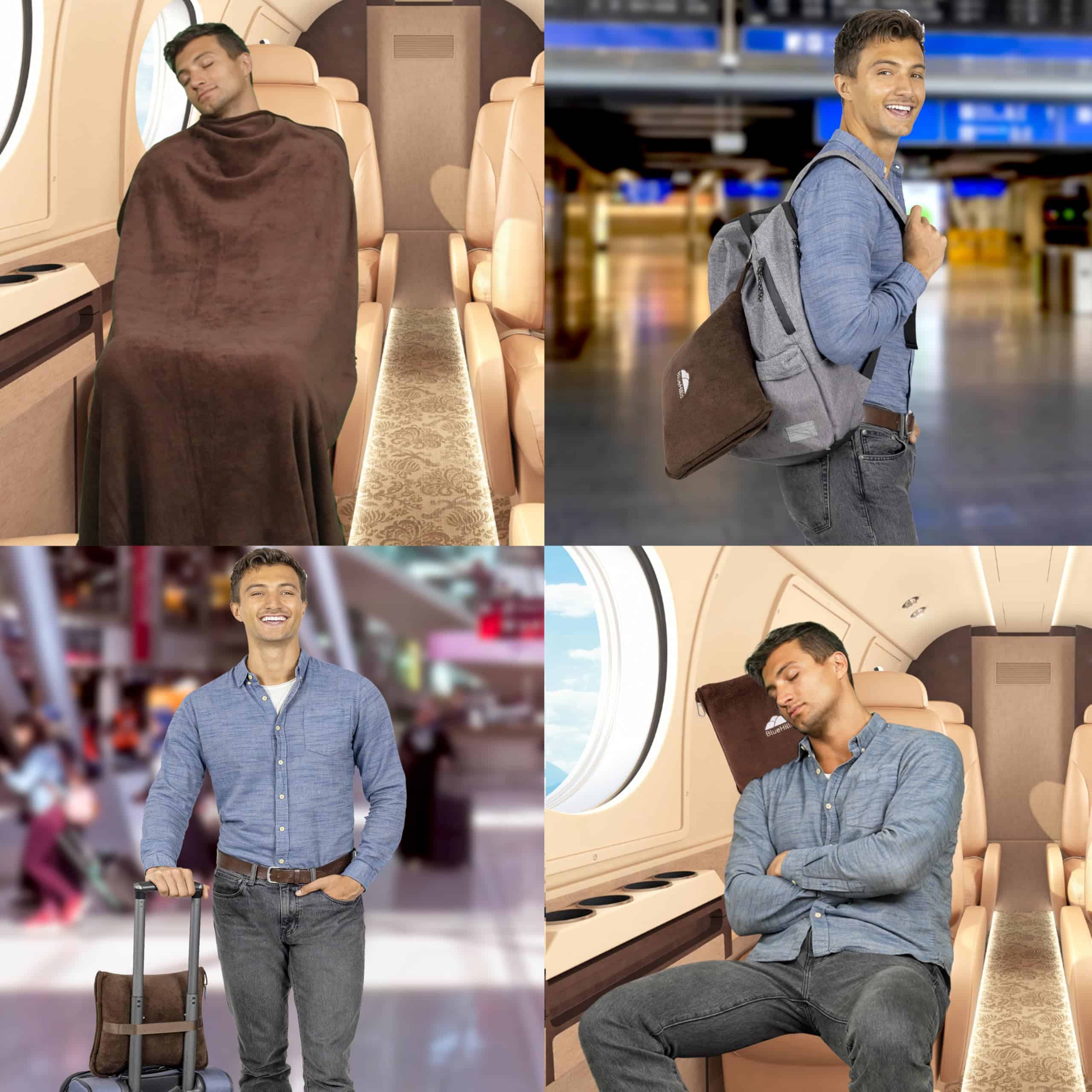 Manta de viaje suave BlueHills Premium con almohada Bolsa