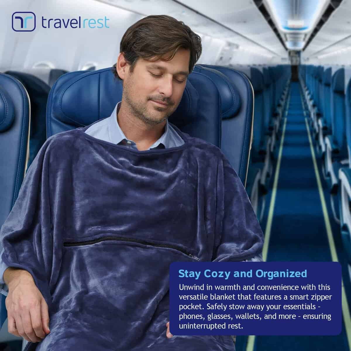 3. COMODIDAD VERSÁTIL EN CUALQUIER LUGAR: Con la manta 4 en 1 adaptable de Travelrest, una adición esencial a tu equipaje de viaje para tus próximas aventuras. Ideal para diversos medios de transporte, desde aviones y trenes hasta autobuses, autos e incluso autocaravanas, esta manta asegura que te mantengas cómodo durante cada viaje. Y cuando estás en casa, se transforma en el compañero perfecto para el sofá. Ya sea en tránsito o relajándote, nuestra manta de viaje se adapta a tu estilo de vida con su diseño versátil.