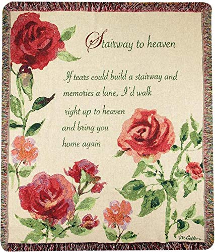 Inspirational Stairway to Heaven Red and Green Floral Throw Blanket with Fringe Border 60″ X 50″