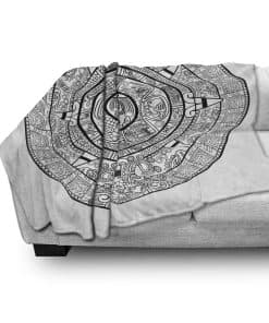 Manta decorativa Lunarable Mesoamericana con diseño del Calendario Maya Preciso y motivos de Antigüedades astrológicas, geográficas e indígenas. Esta manta de 50″ x 70″ es ligera y acogedora, perfecta para sofás, oficinas, sillones y camas. Fabricada con %100 poliéster de franela fleece ultra suave que brinda un tacto suave y cálido. Puede ser utilizada por tus mascotas y toda la familia. Se puede lavar a máquina en ciclo frío y colgar para secar. Con cuidado adecuado, no se desvanece ni se rompe. Su impresión de alta calidad mediante tecnología de impresión digital de última generación solo se encuentra en un lado de la manta.