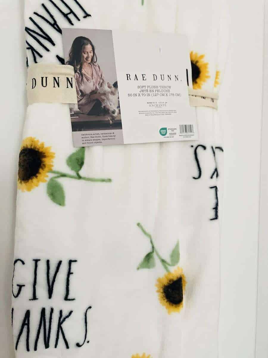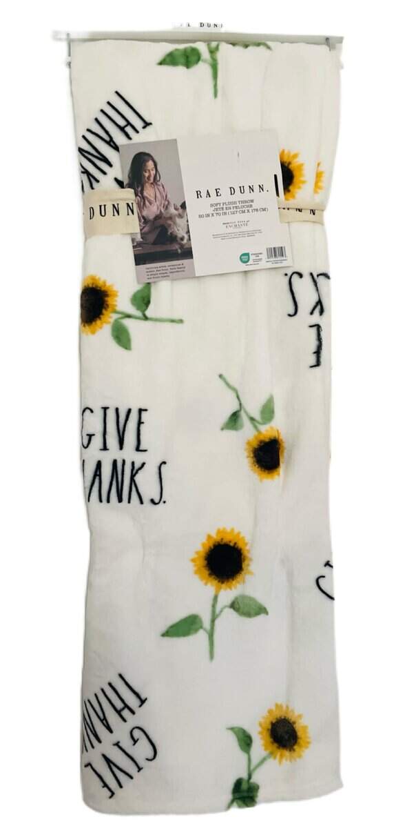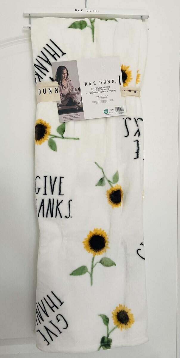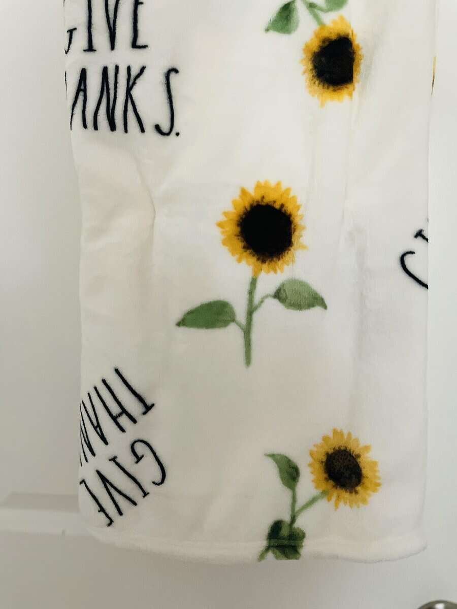 Manta decorativa Rae Dunn Give Thanks and Sunflower/ Tema