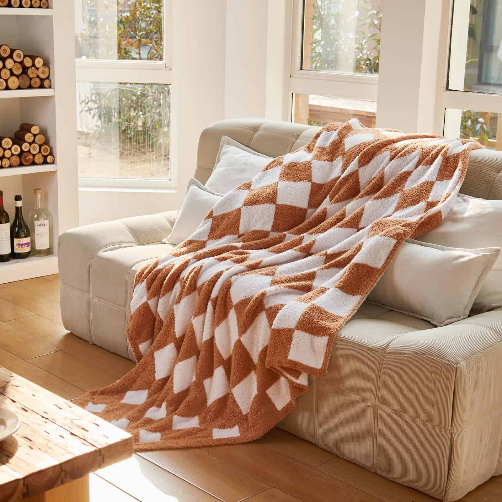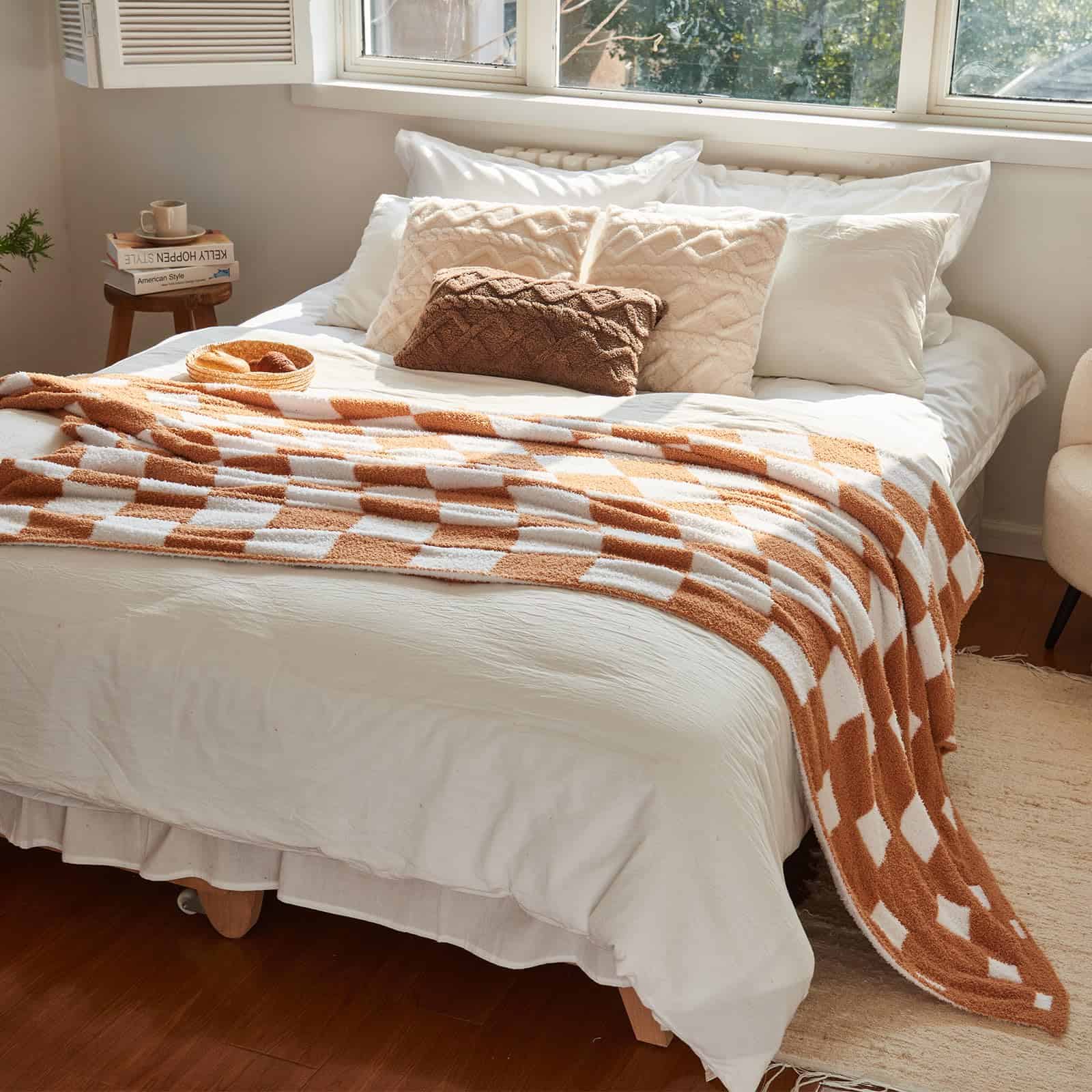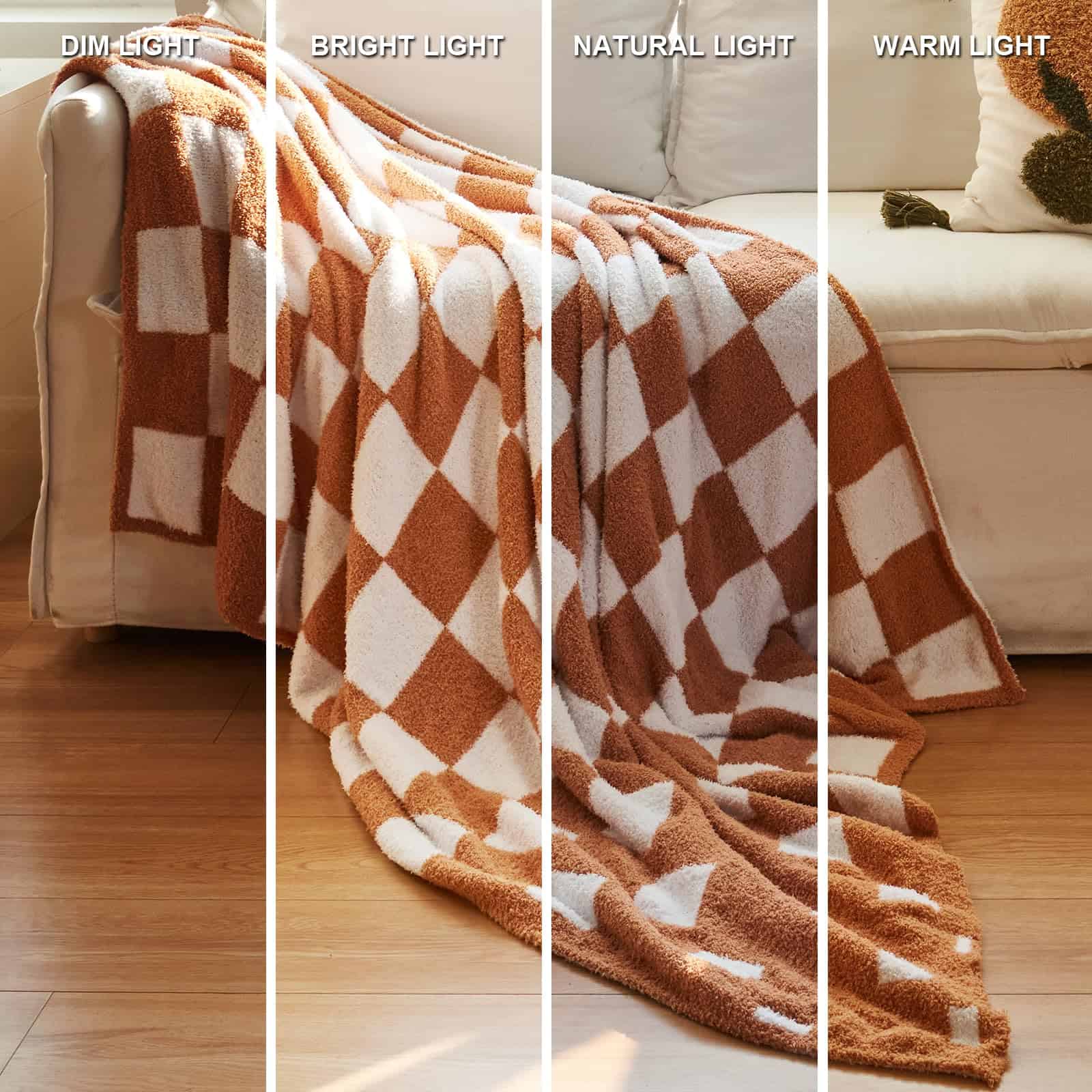 3. USO DURANTE TODO EL AÑO La manta peluda para sofá EASEON es tu elección ideal para la primavera, su estilo de granja se mezcla perfectamente con la primavera floreciente. En verano se convierte en una manta refrescante, su tejido ligero y transpirable te mantiene abrigado pero sin sobrecalentarte en un cuarto con aire acondicionado. Tener esta manta de otoño en otoño es un equilibrio inteligente entre calidez y estética. Como manta de invierno, es libre de ser colocada como un chal o bufanda para abrigarte al aire libre, ¿no te gustaría tener una manta tan suave?