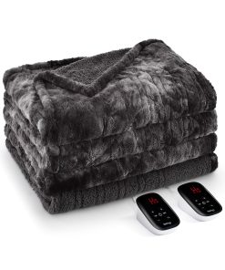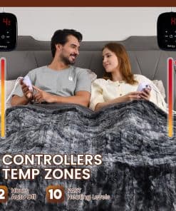 Nuestra manta eléctrica tamaño king 100″x 90″ está fabricada con una combinación de piel sintética de lujo y sherpa suave y esponjoso. La manta eléctrica Bearhug te mantendrá cálido durante todo el día y añadirá un toque de lujo a tu hogar. Con controladores duales y 10 niveles de calentamiento ajustables, esta manta te brindará calor instantáneo de manera uniforme en dos zonas. Certificada por ETL, cuenta con un temporizador de apagado automático después de 12 horas y protección contra sobrecalentamiento para tu tranquilidad. Con un diseño amigable para el usuario que incluye tamaños y colores variados, fácil lavado a máquina y secado en secadora, y un cable extra largo para máxima flexibilidad. ¡Compra sin preocupaciones! Si encuentras algún problema de calidad dentro de los 5 años, contáctanos en cualquier momento. Contamos con servicio al cliente en línea las 24 horas del día, los 7 días de la semana, listo para responder a tus preguntas en cualquier momento.