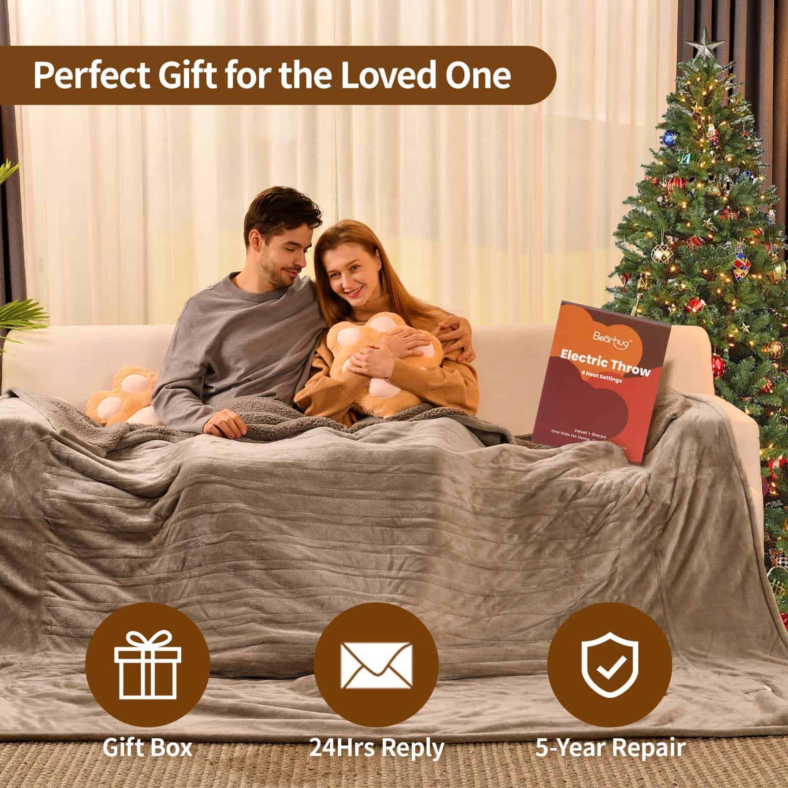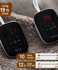 La manta eléctrica Bearhug de tamaño queen está diseñada para ofrecer comodidad y calidez durante los días fríos. Hecha de materiales de alta calidad, es suave para la piel y se ha sometido a estrictas pruebas para garantizar durabilidad. Con dos zonas de calentamiento y controladores individuales, puedes ajustar los 10 niveles de calor según tu preferencia. Los cables calefactores en forma de U distribuyen uniformemente el calor para una sensación acogedora. Además, cuenta con protección contra sobrecalentamiento y apagado automático, lo que la hace segura y eficiente en términos energéticos. Con un diseño amigable para el usuario, es lavable a máquina, se seca en secadora y viene con un cable extra largo para mayor flexibilidad. La manta eléctrica Bearhug es ETL certificada y ofrece garantía de calidad por 5 años. ¡Disfruta de la calidez sin preocupaciones!