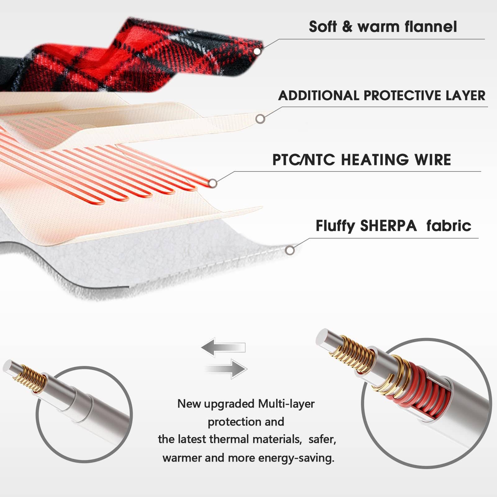 Manta térmica eléctrica 50X60, manta térmica de regalo de Navidad con 10 niveles de calor y apagado automático de 8 horas, manta de Sherpa roja a cuadros cálida para adultos, uso en sofá cama de oficina, ETL. ¡Esta elegante manta eléctrica es el regalo perfecto para las vacaciones! Su diseño clásico a cuadros agrega calidez a cualquier hogar mientras brinda una comodidad incomparable. Con ajustes de calor ajustables, asegura comodidad para leer o tiempo en familia. Regala calidez y amor esta Navidad con este compañero perfecto!. La manta térmica tiene certificado ETL. Fijación de alambre calefactor y protección contra sobrecalentamiento para evitar que la manta se cortocircuite debido al doblado y alta temperatura. La muestra de manta de felpa más cálida ha sido probada para más de 50000 usos, y el panel de control está hecho de PC, lo que evita que se derrita a alta temperatura y falle debido al lavado y doblado de la máquina, lo que garantiza una seguridad más…