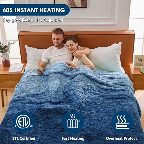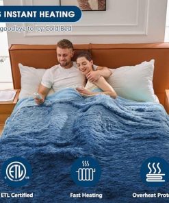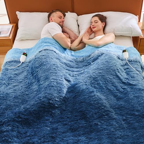 La manta calefactada tiene una capa exterior de piel sintética y una capa interior de sherpa de alta calidad para una experiencia cómoda y cálida. El control dual flexible ofrece 5 periodos de apagado programado y 10 ajustes de temperatura que van desde 86 F a 113 F. Diseño único de color degradado que es atractivo y a la moda. Certificada por ETL y FCC para mayor seguridad y ahorro de energía. Lavable y extraíble, ideal para mantenimiento simple. Perfecta para regalar a alguien que le guste abrigarse en invierno.