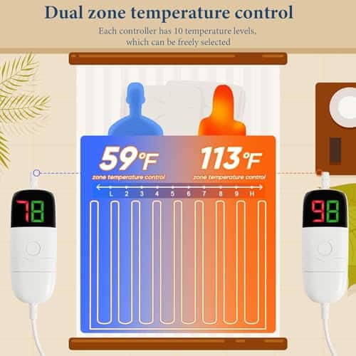 Esta manta calefactora RUJIPO tamaño queen de piel sintética con espalda de sherpa es una adición acogedora a su hogar durante los fríos días de invierno. Con un diseño único de color degradado y una capa externa de piel sintética de lujo, esta manta eléctrica ofrece una experiencia cálida y reconfortante. Los dos controladores flexibles le permiten ajustar la temperatura y el apagado programado según sus preferencias. La manta calefactada también cuenta con certificaciones de seguridad, como la ETL y la FCC, para garantizar su tranquilidad durante el uso. Además, la característica de apagado automático proporciona una mayor seguridad y tranquilidad a la hora de dormir. La manta calefactada es desmontable y lavable, lo que facilita su cuidado y mantenimiento. Disfrute de la comodidad y el calor durante los meses de invierno con la manta calefactora RUJIPO. ¡Ordene la suya hoy y regálese una experiencia acogedora y cálida en casa!