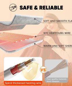 2. Ahorro energético y rentable: En comparación con el aire acondicionado o calefacción por suelo radiante, la manta eléctrica tamaño King de greenoak con control dual es más eficiente en energía y puede ahorrar más costos de calefacción en invierno; En comparación con la manta calentada USB inalámbrica, manta calentada con batería operada, el colchón calefactado es más seguro, no es necesario reemplazar la batería; Un área de calefacción más grande proporciona 3-5 veces más calor que una pequeña manta eléctrica de regazo caliente.