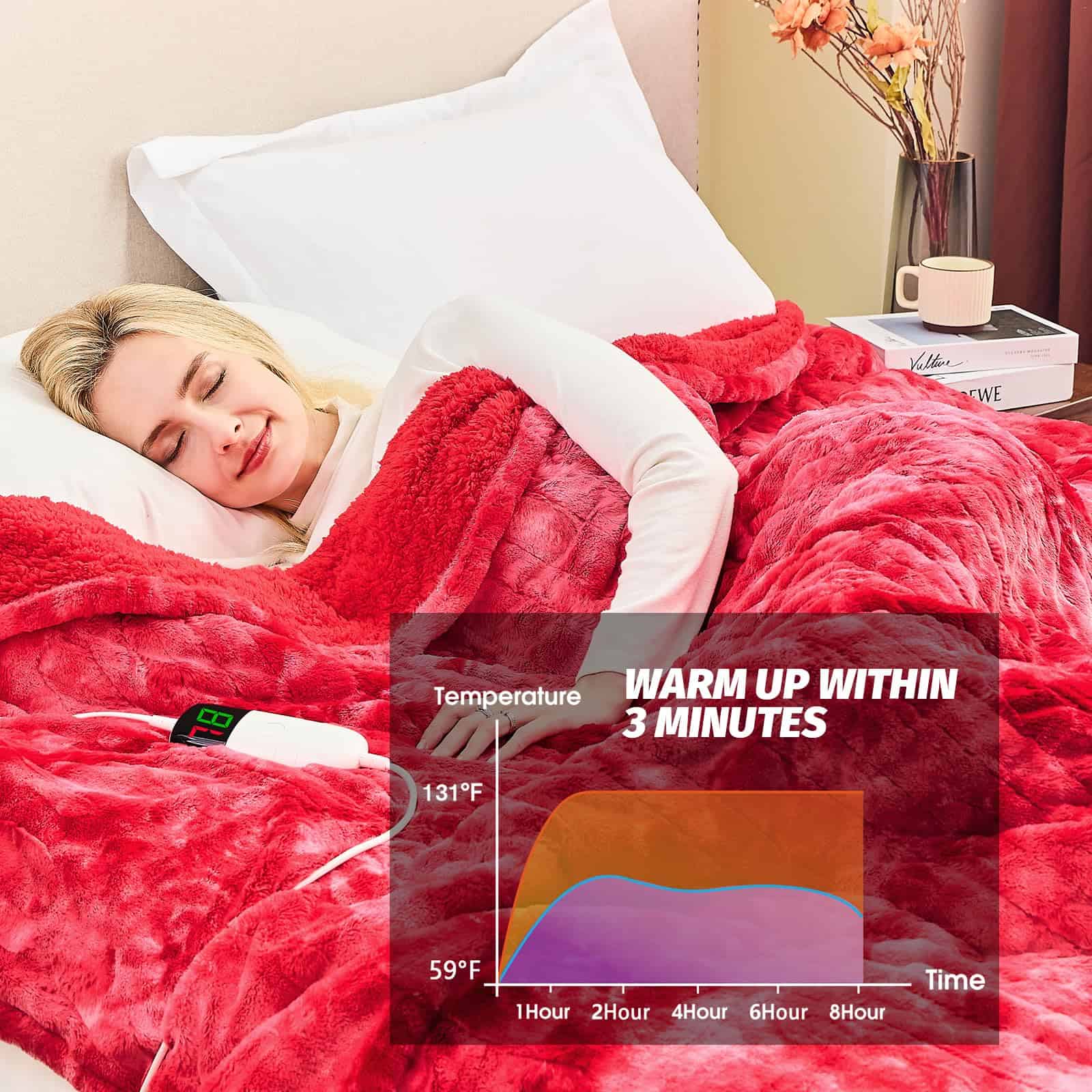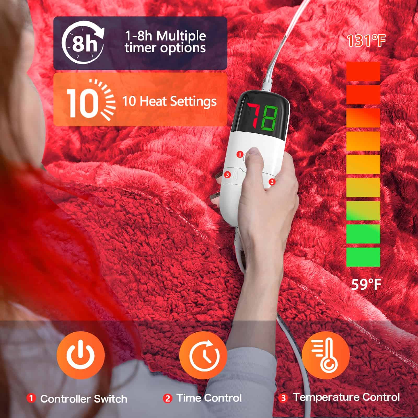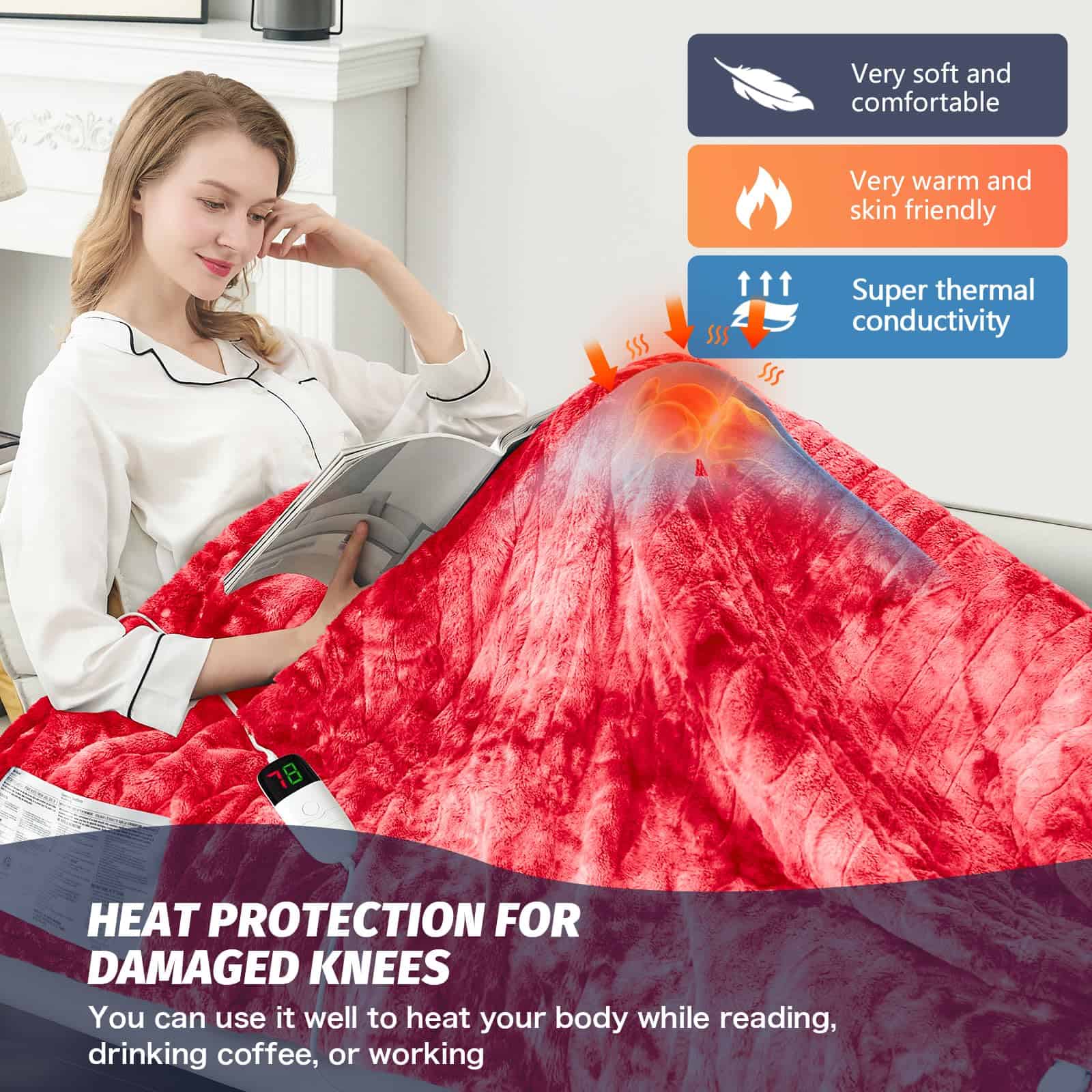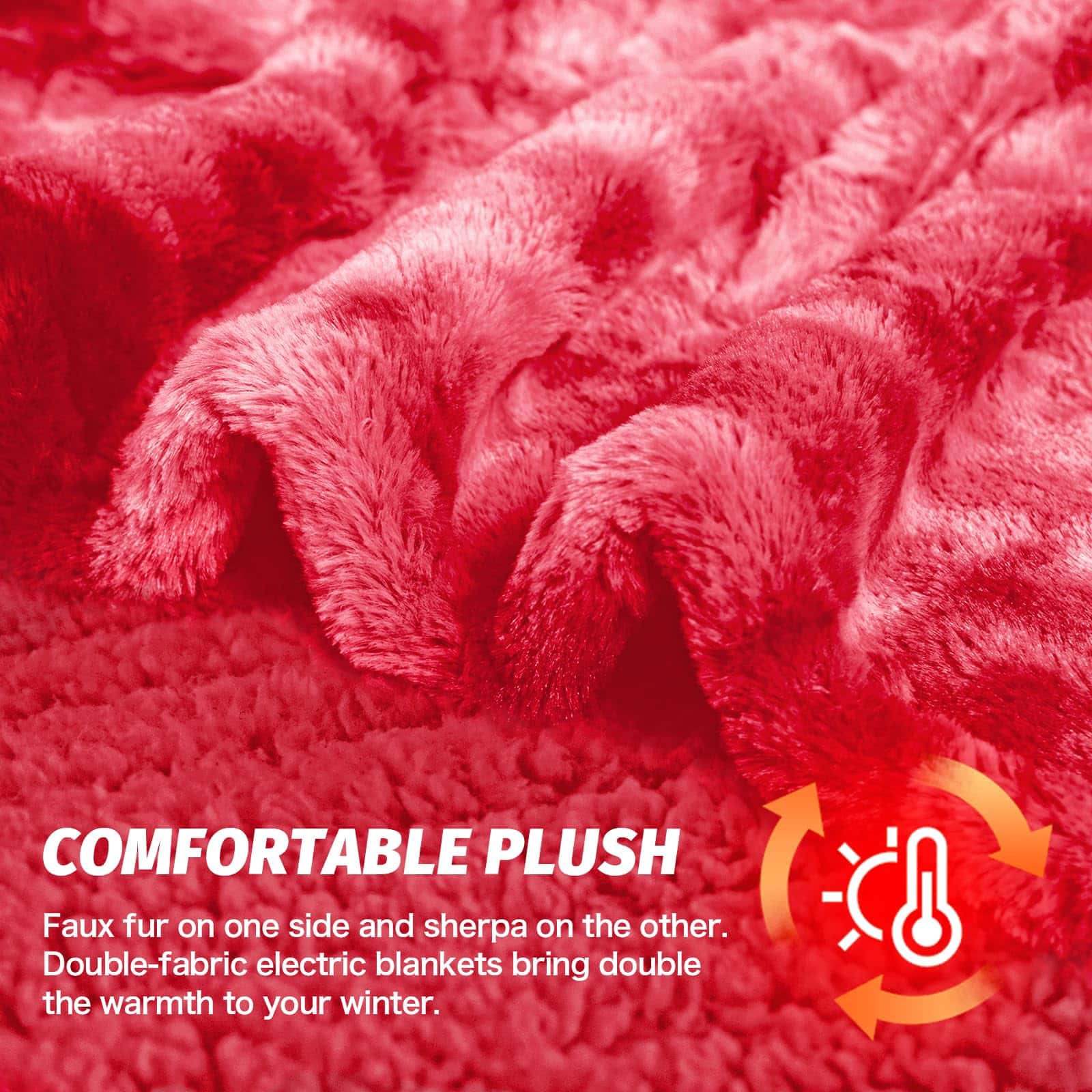 1. DI ADIÓS AL FRÍO: Quizás compraste una manta eléctrica para hacer el invierno más acogedor, ¡felicidades, has descubierto el secreto del calor! Cuando tienes una manta eléctrica extra gruesa de lana, la usarás mientras lees, la colocarás en tu regazo mientras trabajas (como una gran almohadilla térmica), la tendrás a tu lado durante la siesta y mientras duermes, y te cubrirás con ella mientras ves la televisión en el sofá. Este sería un regalo genial para padre, madre e hijos. 2. PARA TU CONSIDERACIÓN EN AHORROS: ¿Encuentras que la calefacción es demasiado cara? Los inviernos frígidos te obligan a pagar facturas de calefacción exorbitantes. Pero con nuestra manta eléctrica tamaño queen Octrot, solo necesitas cubrir una fracción del costo de electricidad, reduciendo significativamente tus gastos de invierno. Las mantas eléctricas calentadas Octrot son tan suaves como la piel de conejo, proporcionando un tacto suave tal como lo imaginas. La Felpa Sherpa duplica el calor, incluso cuando hay un corte de energía. 3. AJUSTE DE VARIOS ENGRANAJES: Si la manta térmica Pictek cómoda es el corazón, las mantas térmicas son aún más versátiles que las del mercado. Puedes elegir de manera flexible entre cinco periodos de tiempo diferentes para la función de apagado automático, que son 1, 2 , 4, 6 y 8 horas. La manta de felpa difusa se apagará automáticamente de forma regular para garantizar la seguridad y el ahorro de energía. La manta eléctrica tiene 10 ajustes de temperatura, que van desde 59 Fahrenheit a 131 Fahrenheit. 4. UN OBJETO PARA TRES PROPÓSITOS: La acogedora manta térmica no es solo una manta eléctrica, sino también una manta de invierno gruesa y una almohadilla térmica grande. El frente de la manta está hecho de piel sintética y la parte posterior está hecha de felpa sherpa, que ya es muy cálida en circunstancias normales. Su función es igual a la de una almohadilla térmica, que puede proteger tus rodillas, cintura, cuello y varias partes del cuerpo, brindando calor a todo tu cuerpo. Es tu buen compañero para resistir el frío extremo. 5. NUESTRA GARANTÍA: Si tienes alguna duda sobre la vida útil de nuestra manta eléctrica, no dudes en comprar nuestra manta eléctrica queen size lavable con confianza. Nuestras mantas eléctricas han sido actualizadas y sometidas a pruebas rigurosas, con tecnología madura, calentamiento uniforme, largo tiempo de uso y seguridad y confiabilidad del producto. Después de comprar la manta eléctrica, también proporcionaremos garantía de servicio posventa para garantizar tu experiencia como consumidor.