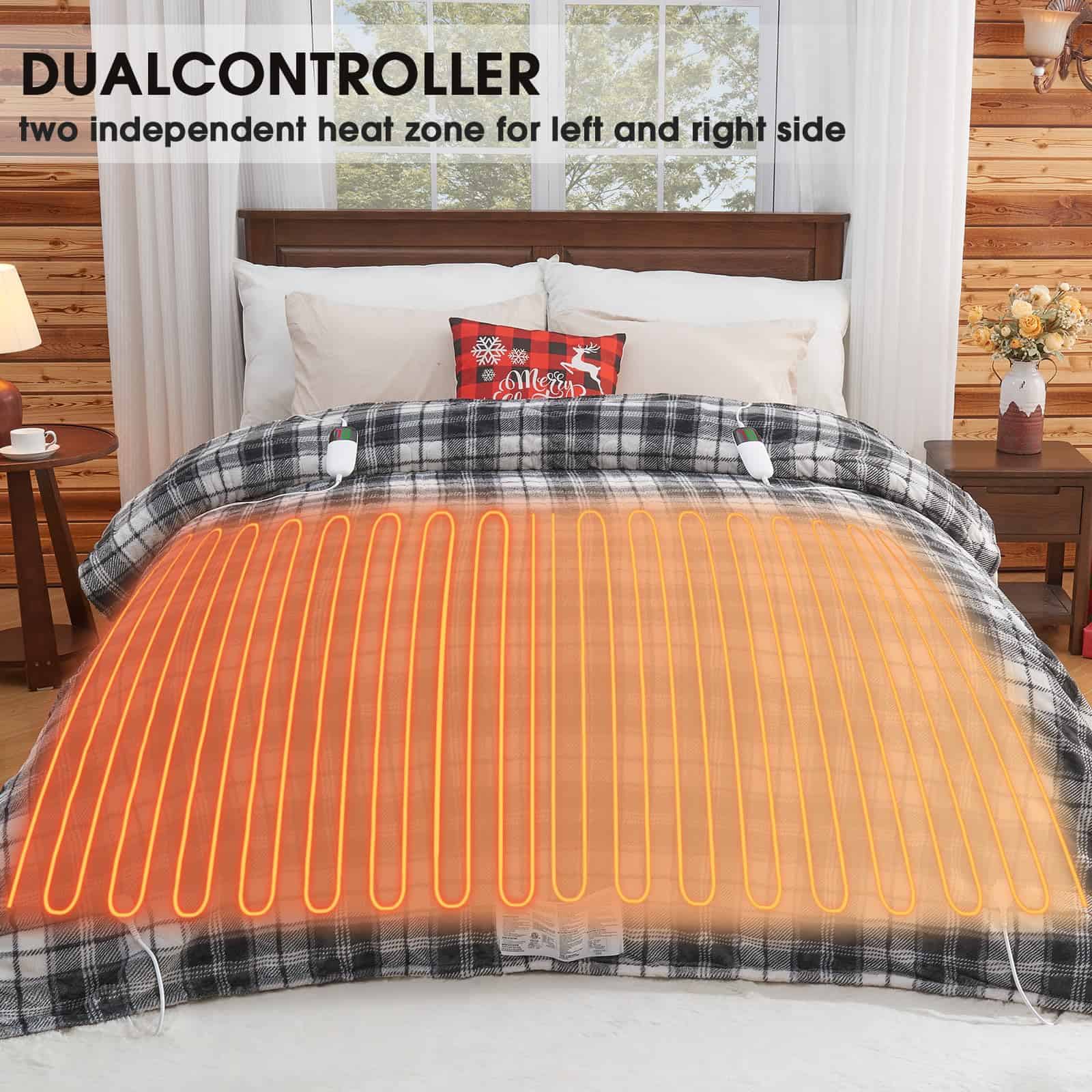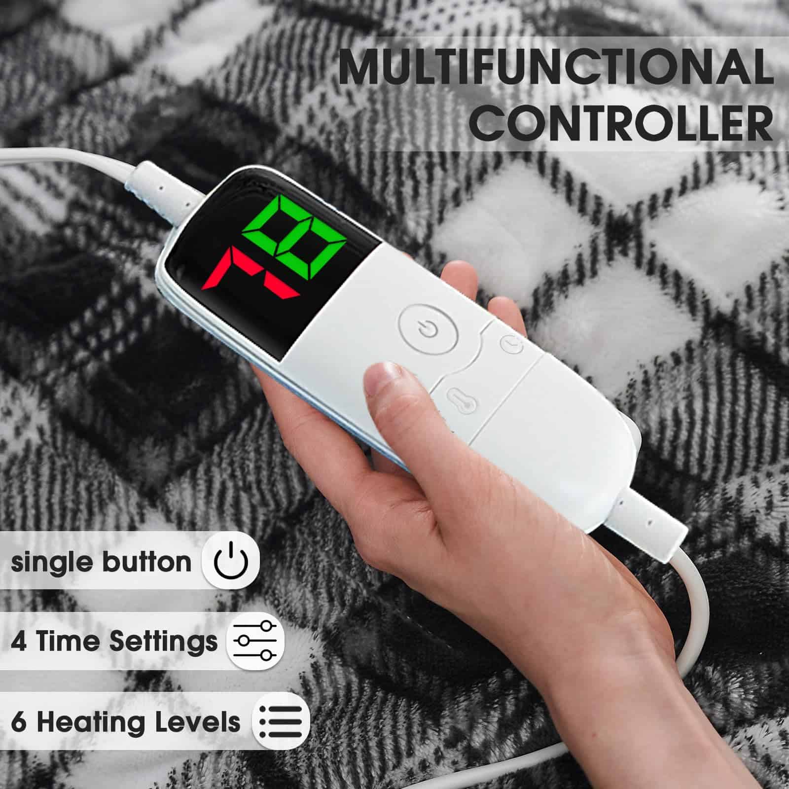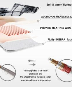 1. SEGURA Y CONFIABLE La manta eléctrica tiene certificado ETL. Fijación de alambre calefactor y protección contra sobrecalentamiento para evitar que la manta cause cortocircuitos debido a doblarse y altas temperaturas. El control dual hecho de material de pc puede soportar altas temperaturas y aumentar en gran medida la velocidad de calentamiento de la manta eléctrica, mientras que el cable de alimentación de la manta tamaño Queen es de hasta 2 metros de largo, resolviendo el problema de la larga distancia entre la fuente de alimentación y su cama. 2. CALIENTE PERO AHORRO DE ENERGÍA La manta eléctrica tamaño queen está optimizada para la función de calentamiento rápido, que puede asegurar que su temperatura ideal se alcance en diez minutos en invierno frío. El alambre calefactor más largo hace que el área de calentamiento alcance más del 85% al mismo tiempo que el calentamiento uniforme. Los avances tecnológicos y los sistemas de control de temperatura inteligente recuperan el exceso de calor a tiempo, ahorrándole muchos costos de calefacción en invierno. 3. CONTROL INTELIGENTE DE TEMPERATURA Y CONFIGURACIÓN DE TIEMPO El diseño de un solo botón y la pantalla grande le ayudan a acostumbrarse rápidamente al controlador. Caliéntese hasta 113 F, y puede elegir entre 10 marchas. Cada valor de temperatura de la manta eléctrica de franela ha pasado por decenas de miles de selección y estadísticas científicas para adaptarse a diferentes climas, escenas diferentes y las necesidades de diferentes personas, para que pueda encontrar el calor más cómodo en la cama. 4. USO EN MÚLTIPLES ESCENARIOS Esta manta eléctrica será el mejor regalo de invierno que jamás hayas recibido. Nuestros diseñadores profesionales han elegido el color internacional de 2024 – Boulevard Black y un patrón de cuadros, para crear una decoración elegante y el mejor regalo para usted. La manta de cuadros de tamaño completo encaja perfectamente con otras decoraciones del hogar y le brindará calor adicional en este invierno. 5. PROBLEMAS POSTVENTA La manta eléctrica se puede lavar a mano o a máquina. Asegúrese de separar el controlador de la manta Sherpa antes de limpiarlo. Después de asegurarse de que la manta tamaño queen esté completamente seca, vuelva a conectar el controlador y úselo. Cuando el programa del controlador encuentre un problema, habrá indicaciones F2, F5 para notificarle, no se preocupe, la operación simple en el manual de instrucciones resolverá su problema al 100%.