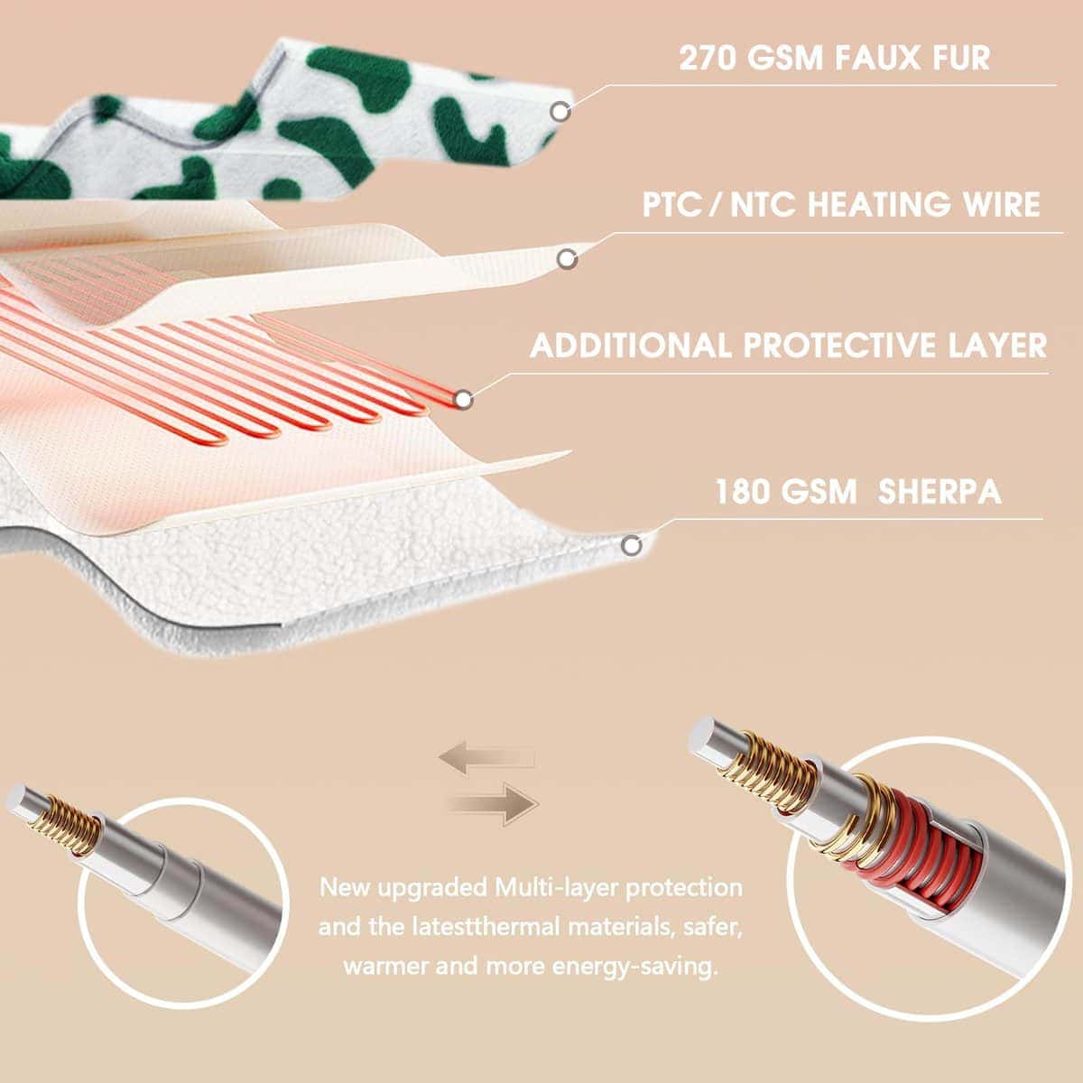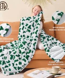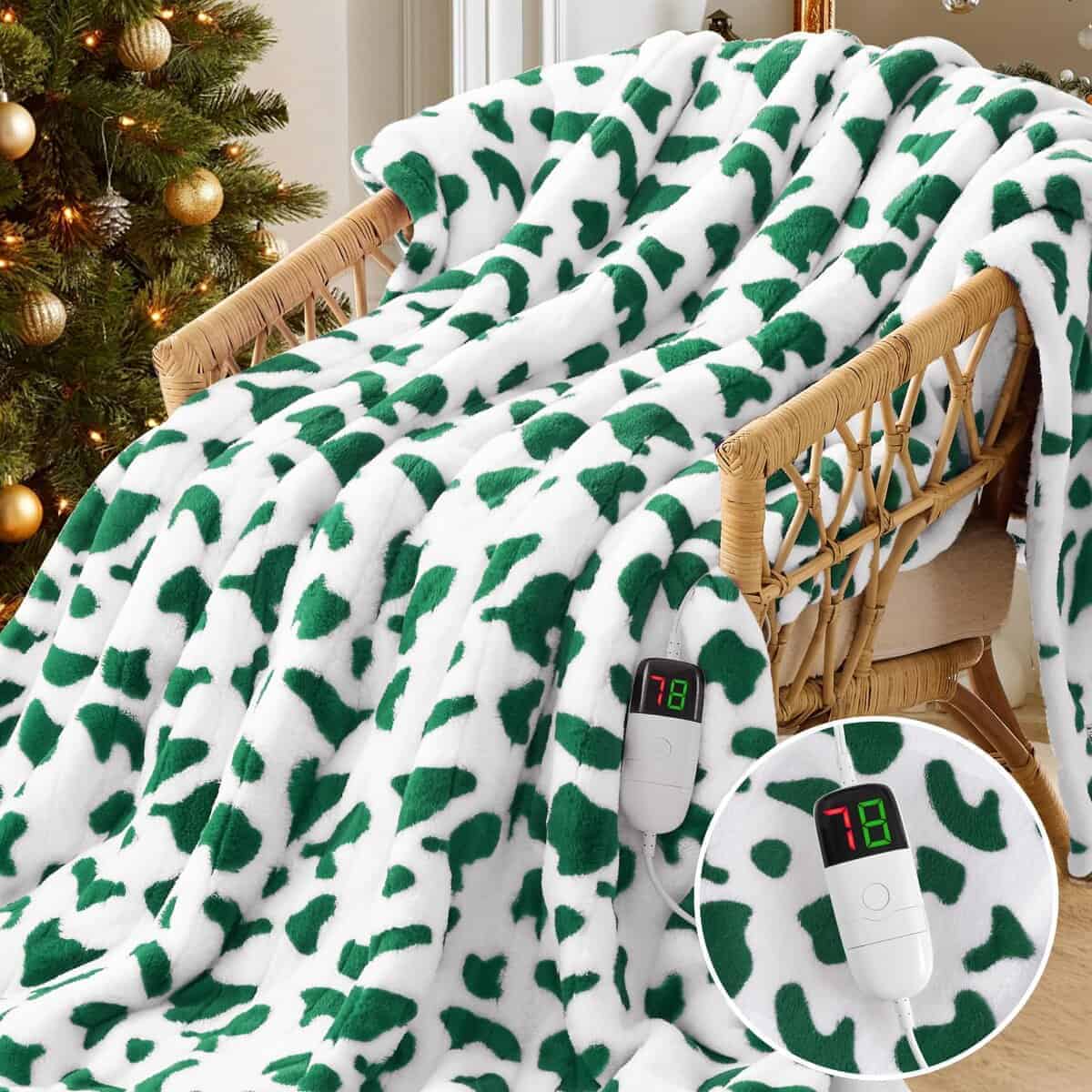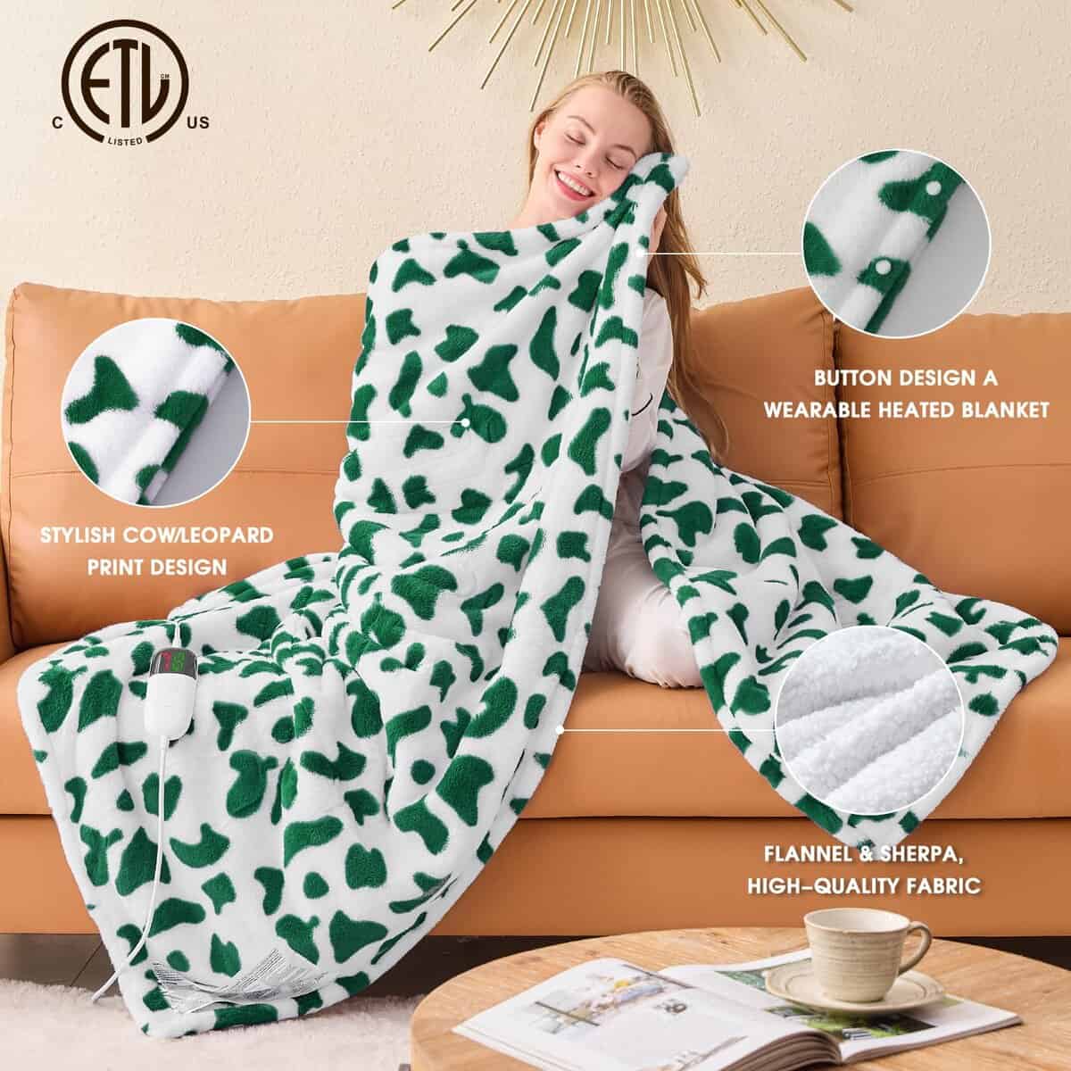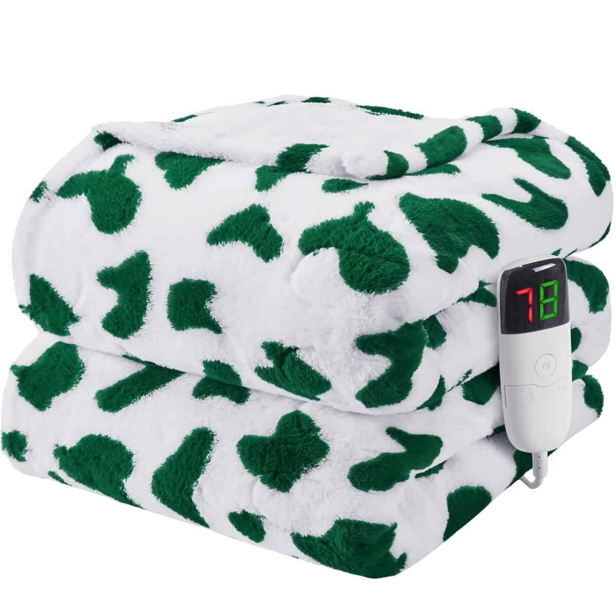 La manta eléctrica Green Heated Blanket es perfecta para mantenerse cálido y acogedor durante los días fríos de invierno. Con su diseño de piel falsa de vaca en verde, esta manta twin de 62×84 pulgadas combina estilo y funcionalidad. Con 10 niveles de calentamiento, puedes ajustar la temperatura a tu gusto y disfrutar de un calor reconfortante en cuestión de minutos. La manta está hecha de materiales de alta calidad que son suaves al tacto y amigables con la piel, lo que la hace ideal para toda la familia. Además, la manta eléctrica cuenta con funciones de seguridad avanzadas, como protección contra sobrecalentamiento y un diseño de aislamiento mejorado, para que puedas disfrutar de un calor seguro y suave. Disfruta de la comodidad y la calidez que ofrece la manta eléctrica Green Heated Blanket y convierte tu hogar en un lugar acogedor para relajarte.