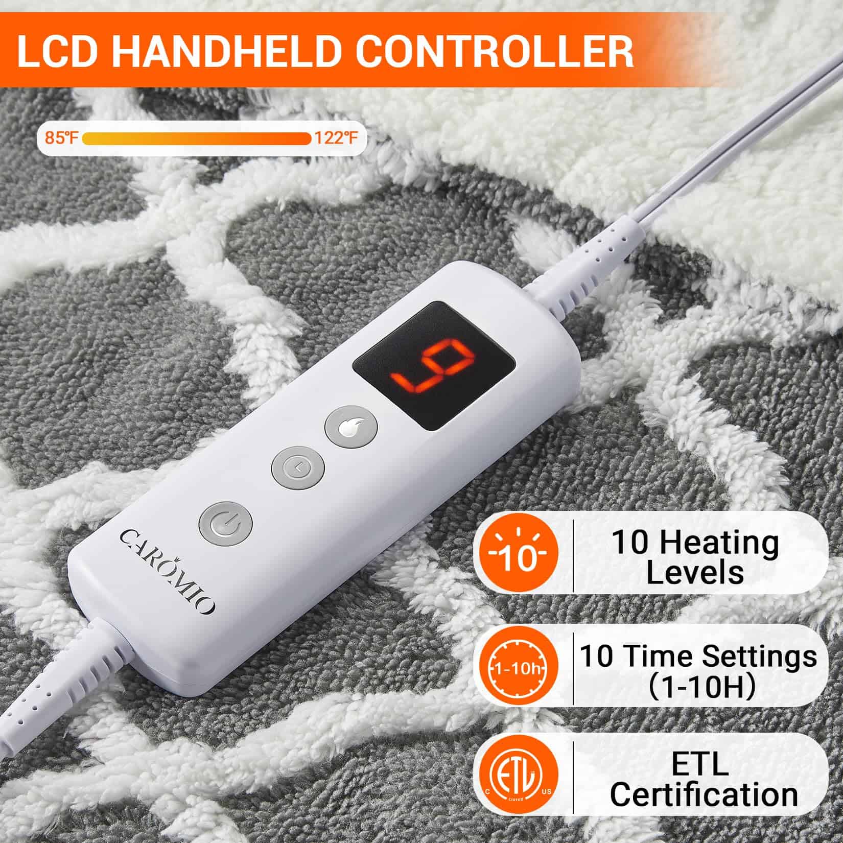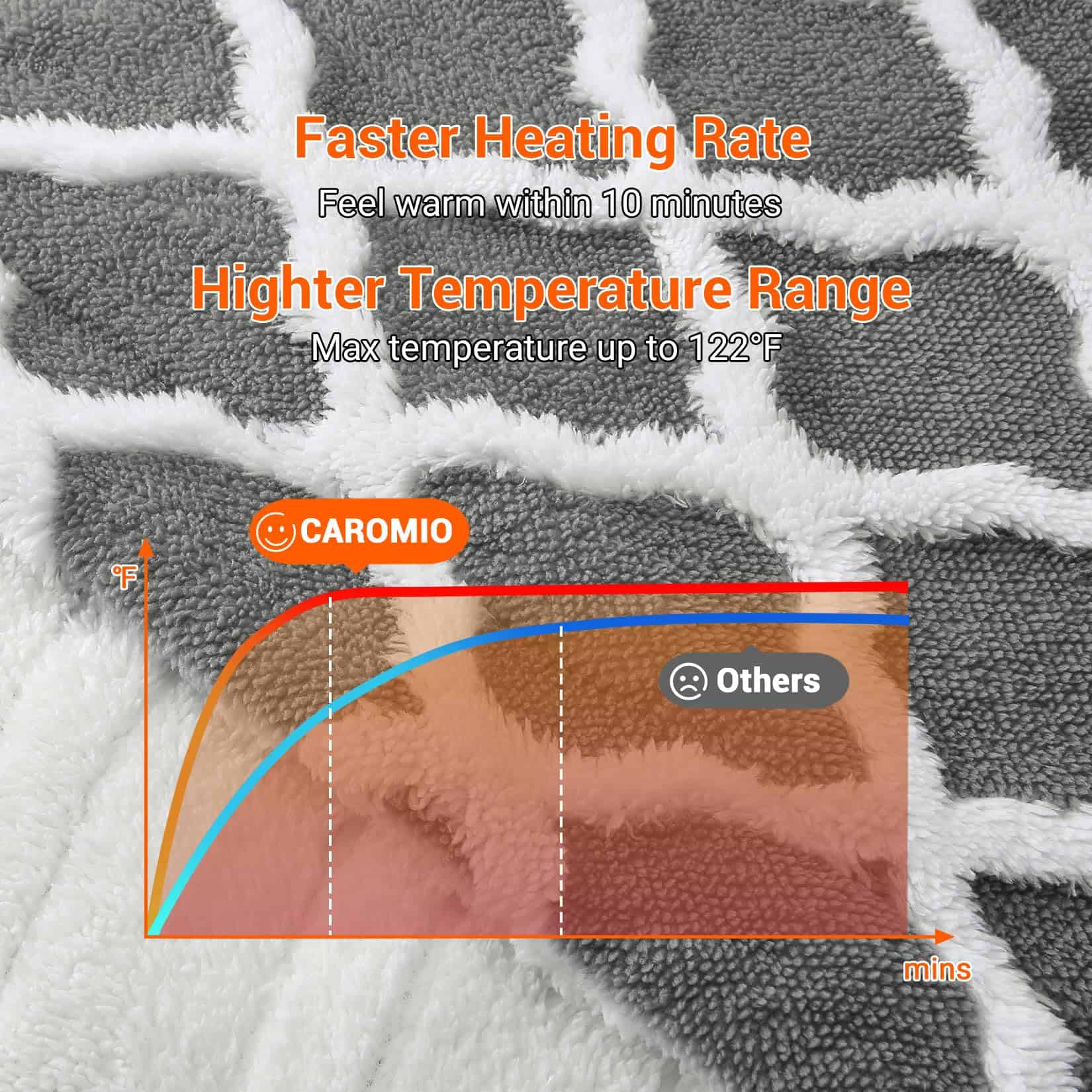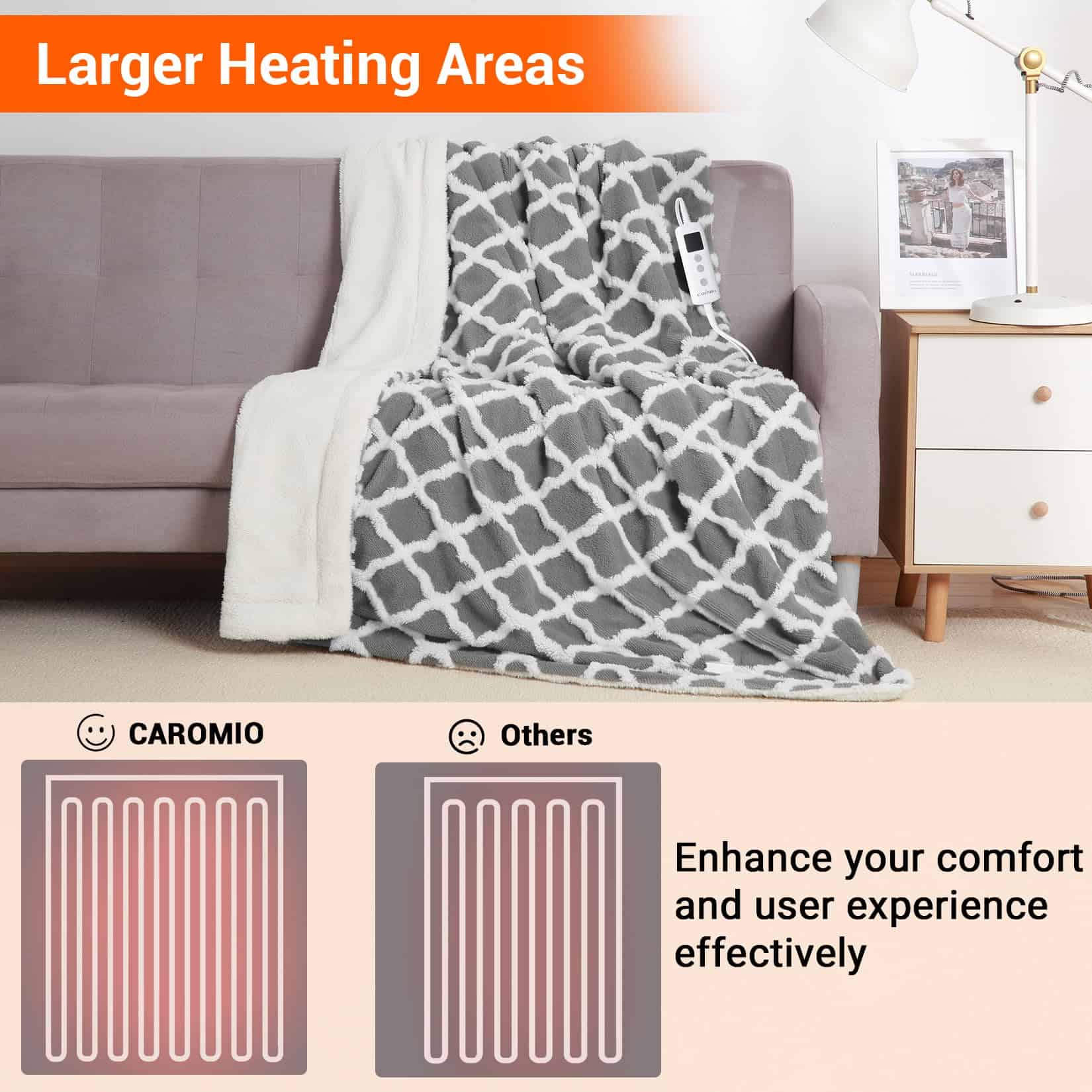 Manta Eléctrica CAROMIO, Cobertor Calefactable Sherpa con 6