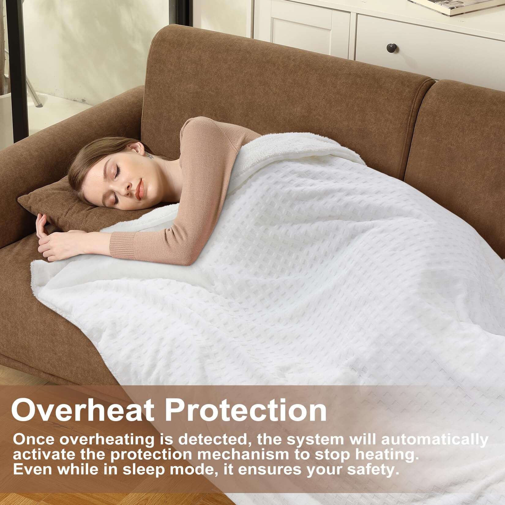 1. Eleva tu comodidad y estilo con nuestra manta eléctrica de sherpa. Con un patrón de gofre acolchado, agrega un toque de elegancia a tu hogar. Confeccionada con franela jacquard de 240GSM en un lado y sherpa de 210GSM en el otro, ofrece una suavidad y comodidad excepcional para una experiencia realmente acogedora.
