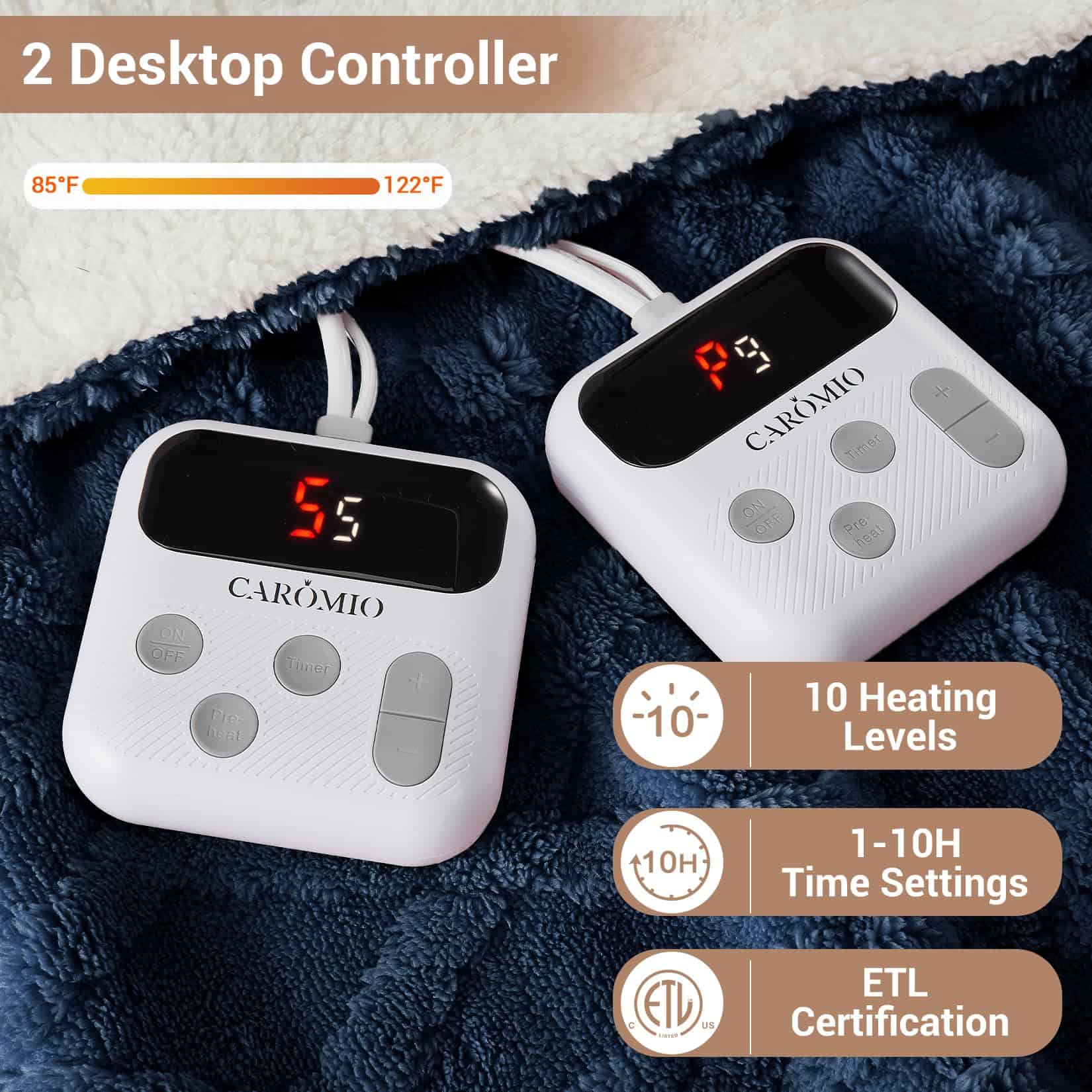 Manta Eléctrica CAROMIO tamaño Queen con -Azul Marino