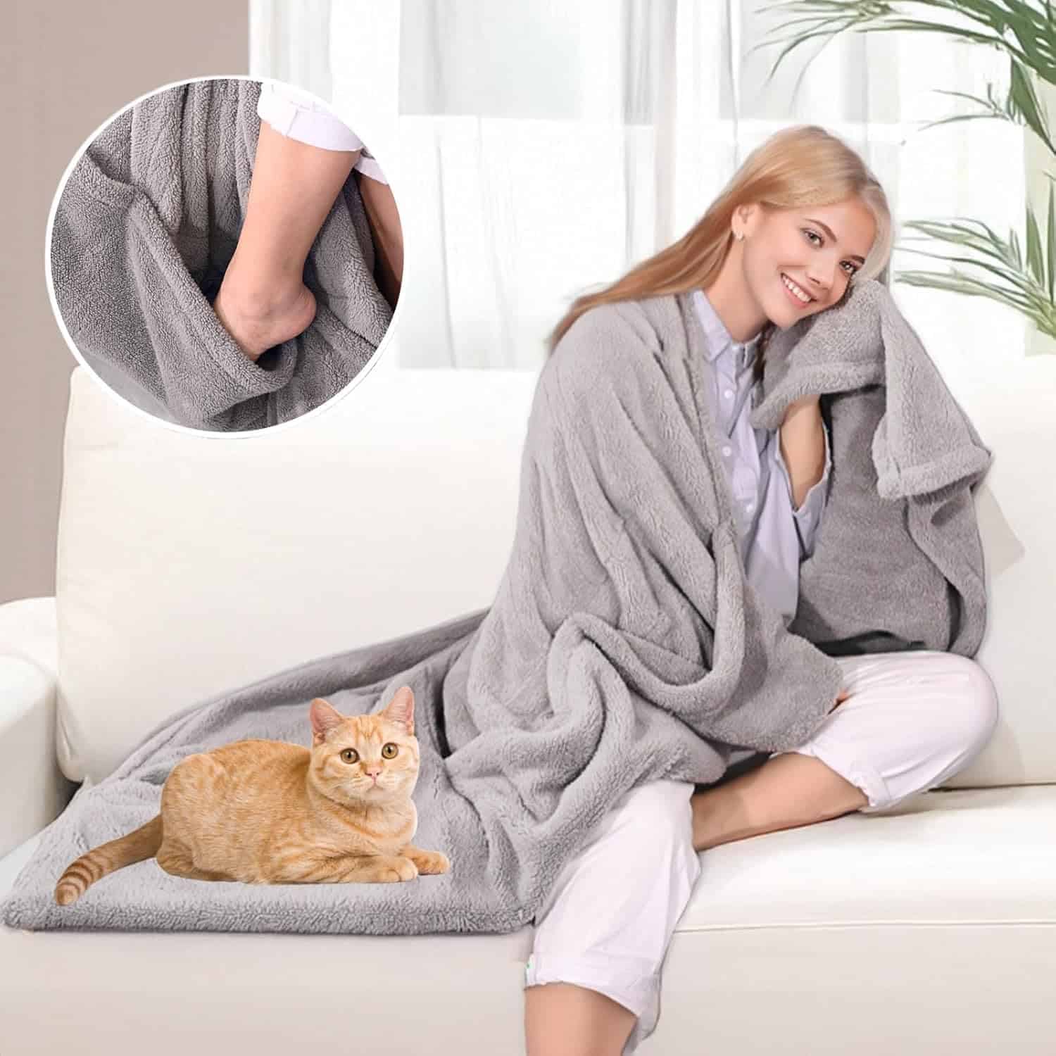 Manta Eléctrica con Bolsillo para los Pies para Sofá o
