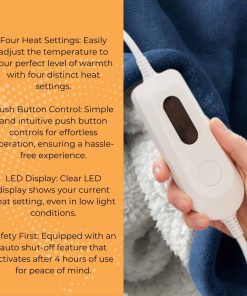 1. Mantente acogedor con nuestra manta de felpa de 60 x 70 pulgadas, con 4 ajustes de calor y un apagado automático de 4 horas para mayor seguridad. Esta manta eléctrica es perfecta como calientacamas y un imprescindible para el invierno. 2. Esta manta térmica está hecha de una lujosa capa exterior de franela y revestimiento interior de sherpa, esta manta eléctrica de tamaño completo ofrece la máxima comodidad y calidez. Esta manta cálida es imprescindible. 3. Nuestra manta eléctrica con controlador permite un calor personalizado, ideal como manta suave y perfecta para noches acogedoras en el sofá. Esta manta de sherpa es muy suave. 4. Fácil de cuidar, esta manta térmica es lavable a máquina. Mantente caliente con nuestra manta eléctrica de primera calidad. Buscas mantas térmicas, esta es una gran elección. 5. Esta versátil manta térmica también se puede usar como manta eléctrica. Perfecta para usar en sofás, sillones reclinables o en cualquier lugar donde necesites calor adicional. Una adición acogedora a tu hogar.