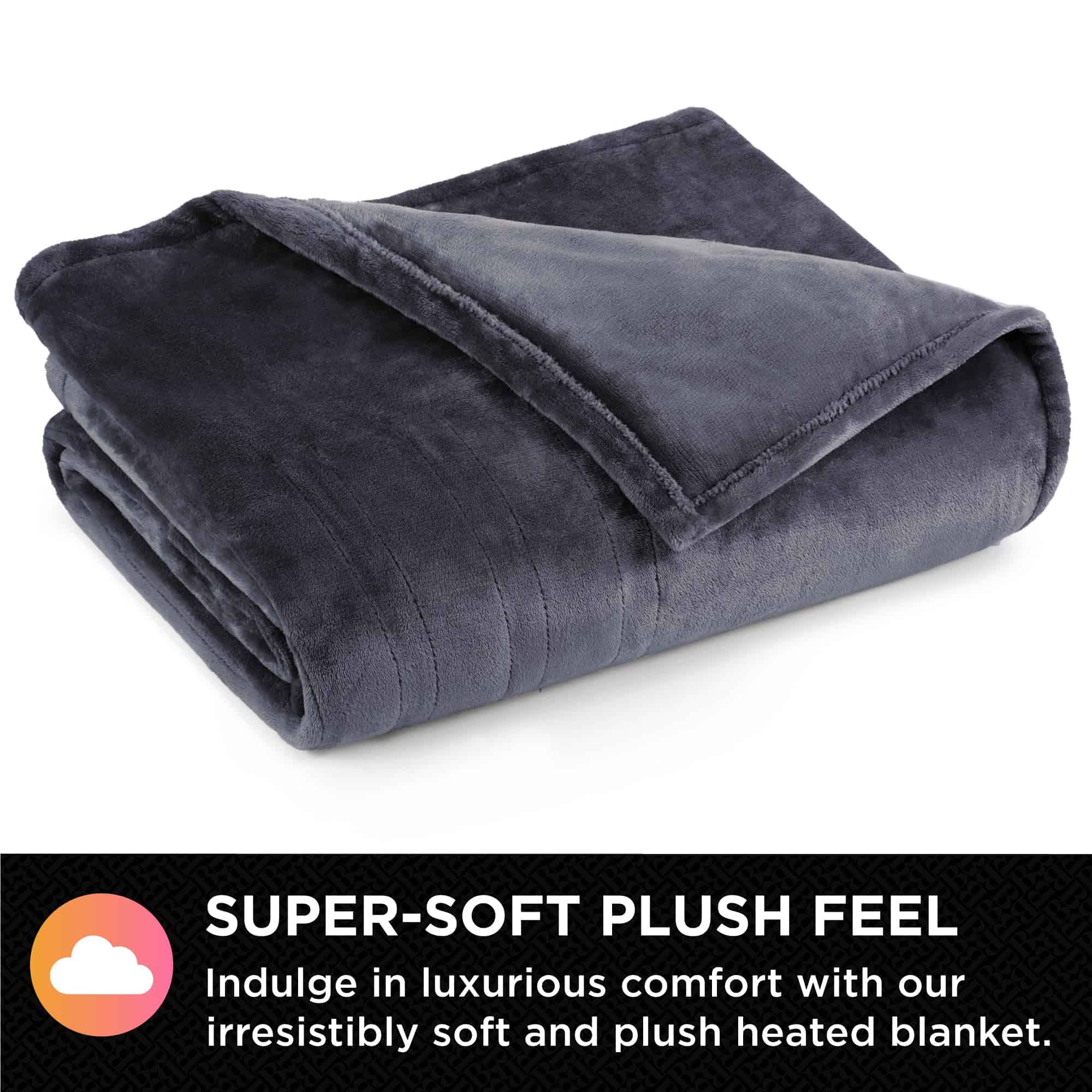 2. SUAVIDAD LUXURIOSA: Hecha de felpa de poliéster terciopelo, esta manta eléctrica calentada proporciona un toque acogedor que es suave contra tu piel. Los materiales premium garantizan una sensación lujosa, haciéndola la manta térmica ideal para las noches frías.