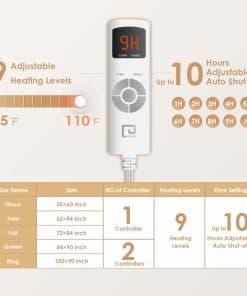 3. Lavable a máquina y seguro para secadora: La manta térmica EHEYCIGA se puede lavar tanto a mano como a máquina y secar de manera segura después de quitar el controlador de calefacción.