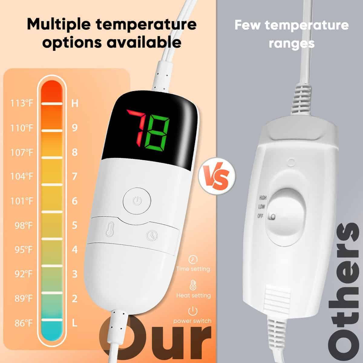Con 10 niveles de calor y 5 opciones de temporizador, esta manta térmica es completamente personalizable para satisfacer tus necesidades en cualquier momento y en cualquier lugar. Ya sea que la uses en la cama, el sofá o en la oficina, la manta eléctrica de greenoak se adapta a cualquier escenario con su amplia área de calentamiento y variedad de colores elegantes.