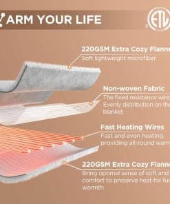 Manta eléctrica tamaño king de Westinghouse cuenta con certificaciones ETL y FCC, protección contra sobrecalentamiento que garantiza tu seguridad durante el uso normal. Certificada por ETL y FCC con baja radiación electromagnética. Por favor, lee las instrucciones cuidadosamente antes de usar para evitar el sobrecalentamiento local causado por un uso incorrecto. Control dual inteligente y protección contra sobrecalentamiento. Controladores duales que permiten a las parejas elegir su temperatura exclusiva, la manta térmica admite calentamiento de 20 minutos, ayuda a iniciar rápidamente el proceso de calentamiento para que no tengas que esperar demasiado para acostarte bajo una cálida manta. Apagado automático de 1-12 horas, protección contra sobrecalentamiento y otras funciones, permitiéndote usarla con más confianza. 10 ajustes de calefacción, la temperatura se puede ajustar libremente. La longitud del cable de alimentación es de 72 + 156 pulgadas. Aplicaciones y escenarios. La manta eléctrica tamaño king de Westinghouse es adecuada para usarla, ver televisión, leer libros, relajarse en casa en el sofá o sofá, durante el trabajo en la oficina, te brinda una experiencia de vida cálida y confortable. Fácil de cuidar y lavable a máquina. Nuestra manta térmica king size es compatible con lavado en máquina, debes desenchufar el cable de alimentación del controlador antes de limpiar y ponerlo en la lavadora a 30 C de temperatura del agua. NOTA: NO LAVAR EN SECO. NO BLANQUEAR. NO PLANCHAR. NO CONECTAR Y ENCENDER EL PRODUCTO DE CALENTAMIENTO CUANDO ESTÉ MOJADO. NO USAR HASTA QUE ESTÉ COMPLETAMENTE SECO. Servicio postventa. La manta eléctrica calefactora de Westinghouse brinda servicio postventa, si tienes alguna pregunta o inquietud sobre el producto, por favor, ponte en contacto con nuestro personal de servicio al cliente para recibir asistencia.