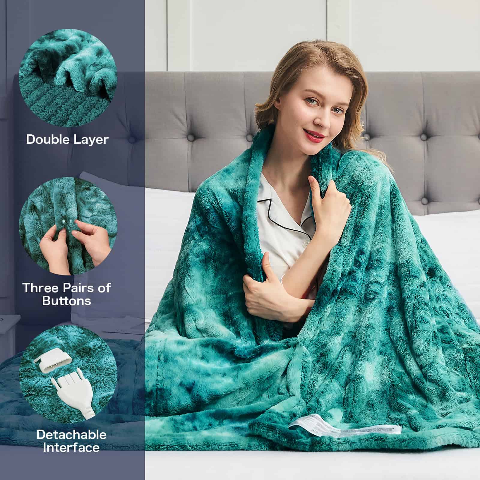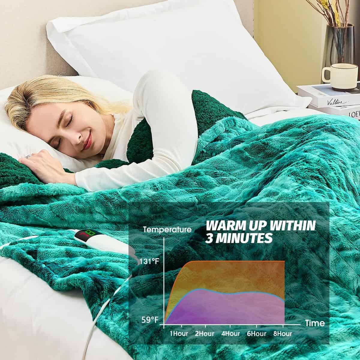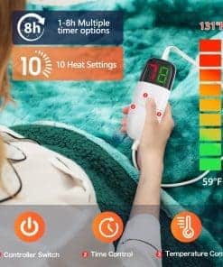 Quizás compraste una manta térmica para hacer más acogedor el invierno, ¡felicidades, has descubierto el secreto del calor! Cuando tengas una manta eléctrica extra gruesa, la usarás mientras lees, la colocarás en tu regazo mientras trabajas (como una gran almohadilla térmica), la tendrás a tu lado durante la hora de la siesta y mientras duermes, y te cubrirás con ella mientras ves la televisión en el sofá. Esta sería un regalo genial para padres, madres e hijos. ¿Encuentras la calefacción demasiado cara El frío invierno te obliga a pagar facturas de calefacción exorbitantes. Pero con nuestra manta térmica eléctrica Octrot, solo necesitas cubrir una fracción del costo de electricidad, reduciendo significativamente tus gastos de invierno. Las mantas térmicas Octrot son tan suaves como el pelaje de conejo, proporcionando un tacto suave justo como lo imaginas. La Franela Sherpa duplica el calor, incluso en caso de un apagón. Si la cómoda manta térmica Pictek es el corazón, la manta térmica Octrot es aún más versátil que las disponibles en el mercado. Puedes elegir de manera flexible entre cinco períodos de tiempo diferentes para la función de apagado automático, que son 1, 2, 4, 6 y 8 horas. La manta de felpa peluda se apagará automáticamente de forma regular para garantizar la seguridad y el ahorro de energía. La manta eléctrica tiene 10 ajustes de temperatura, que van desde 59 Fahrenheit a 131 Fahrenheit. La acogedora manta térmica no solo es una manta térmica, sino también una manta de invierno gruesa y una gran almohadilla térmica. El frente de la manta está hecho de piel sintética y la parte trasera está hecha de franela Sherpa, que ya es muy cálida en circunstancias normales. Su función es la misma que una almohadilla térmica, que puede proteger tus rodillas, cintura, cuello y diversas partes del cuerpo, proporcionando calor para todo tu cuerpo. Es tu buen compañero para resistir el frío extremo. Si tienes alguna duda sobre la vida útil de nuestra manta térmica, siéntete libre de comprar nuestra manta térmica eléctrica lavable con confianza. Nuestras mantas eléctricas han sido actualizadas y probadas rigurosamente, con tecnología madura, calentamiento uniforme, larga vida útil y seguridad y confiabilidad del producto. Después de comprar la manta térmica eléctrica, también ofreceremos garantía de servicio postventa para garantizar tu experiencia como consumidor.