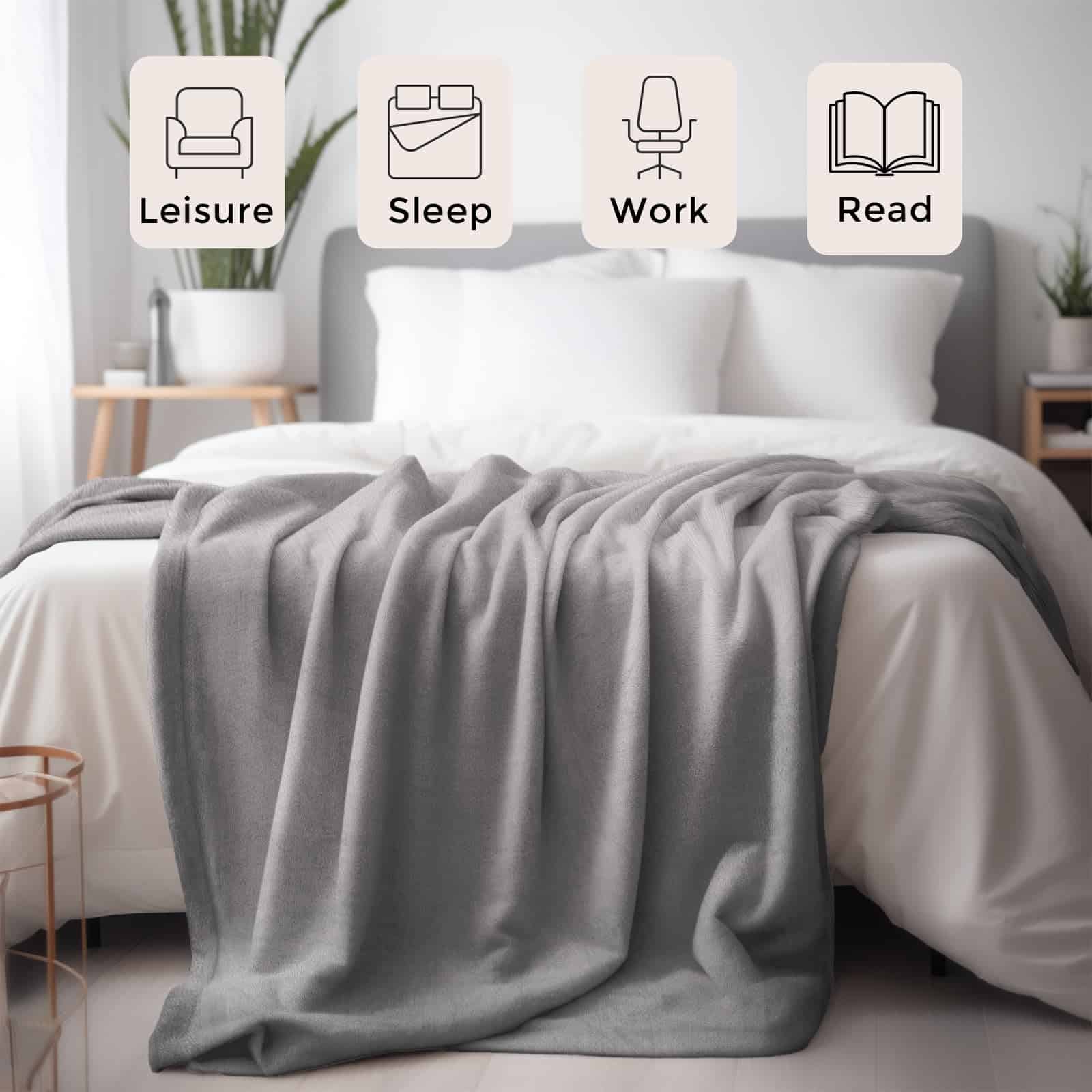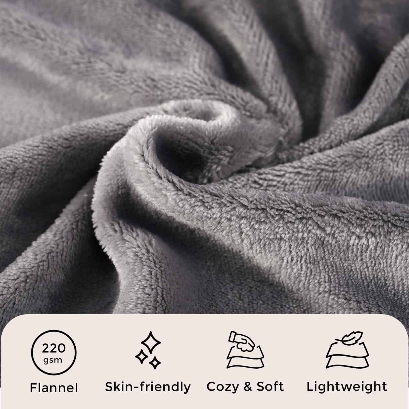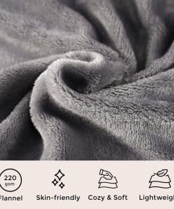 4. Tela Suave y Acogedora: Hecha de franela de doble cara de 220 g/m², esta manta ofrece una suavidad, calidez y durabilidad excepcionales. Es más gruesa y acogedora que las mantas estándar, proporcionando comodidad incluso sin calor. La tela esponjosa y que no suelta pelusa garantiza calidez duradera.