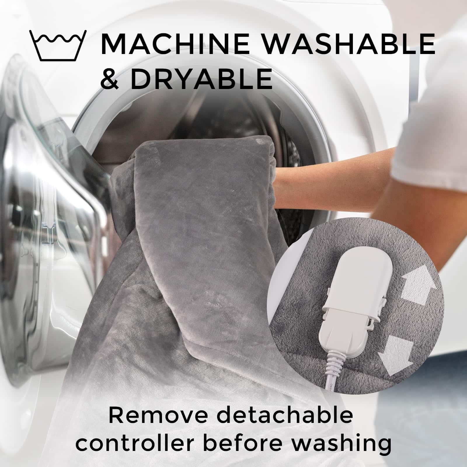 2. Lavable y Secable a Máquina: Esta manta eléctrica tamaño queen es fácil de cuidar. Simplemente desenchufa el controlador y lava a máquina. Es apta para secadora, pero para obtener mejores resultados, sécala al aire o en secadora a baja temperatura para proteger la tela y los elementos calefactores. Asegúrate siempre de que esté completamente seca antes de volver a enchufarla por seguridad.
