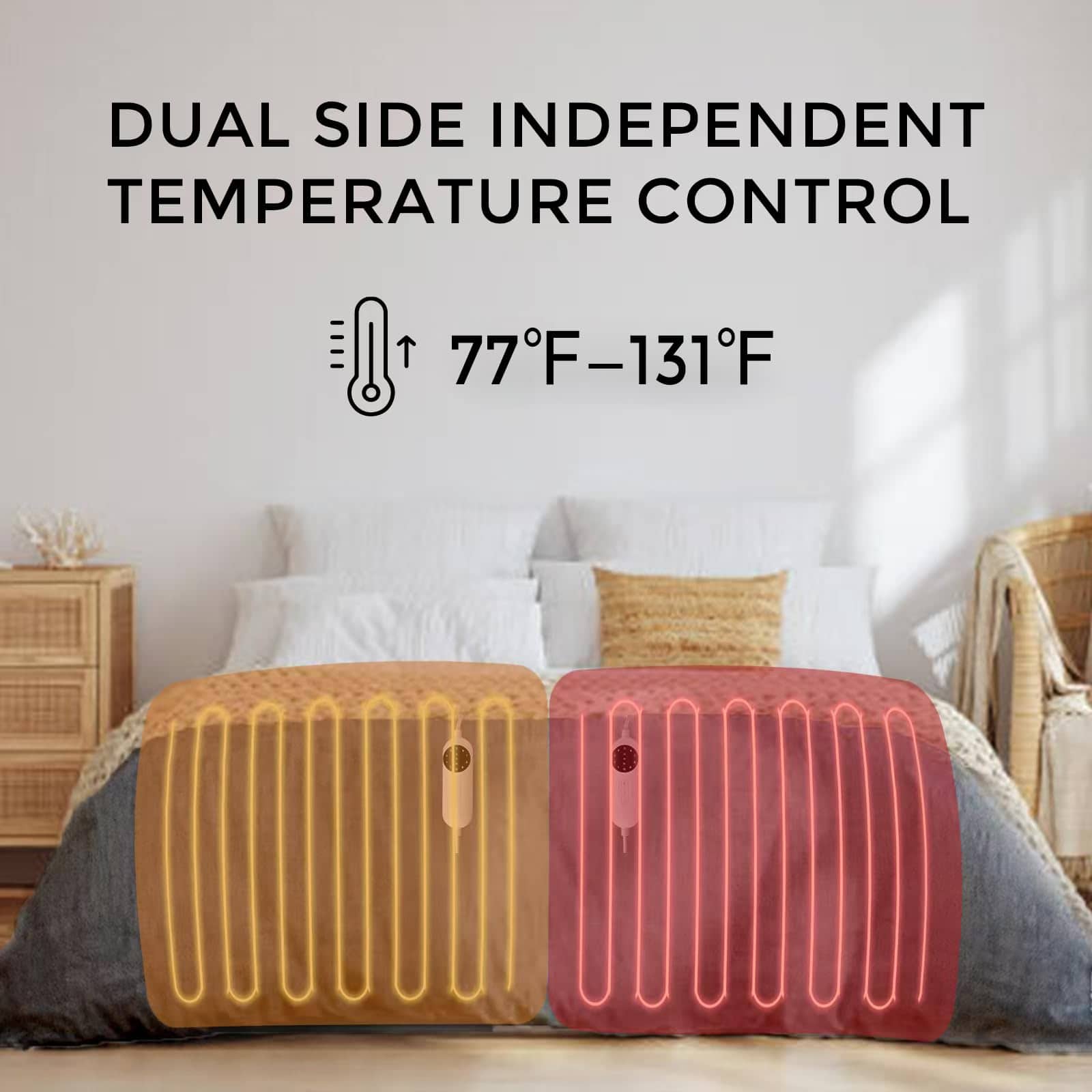 3. Seguridad Confiable: Esta manta eléctrica cuenta con certificaciones ETL, FCC y RoHS con protección contra sobrecalentamiento y apagado automático para tu tranquilidad. Opera con voltaje bajo y está hecha con materiales retardantes de fuego para una seguridad adicional. Evita apilar la manta durante el uso para evitar que la protección contra sobrecalentamiento reduzca la temperatura.