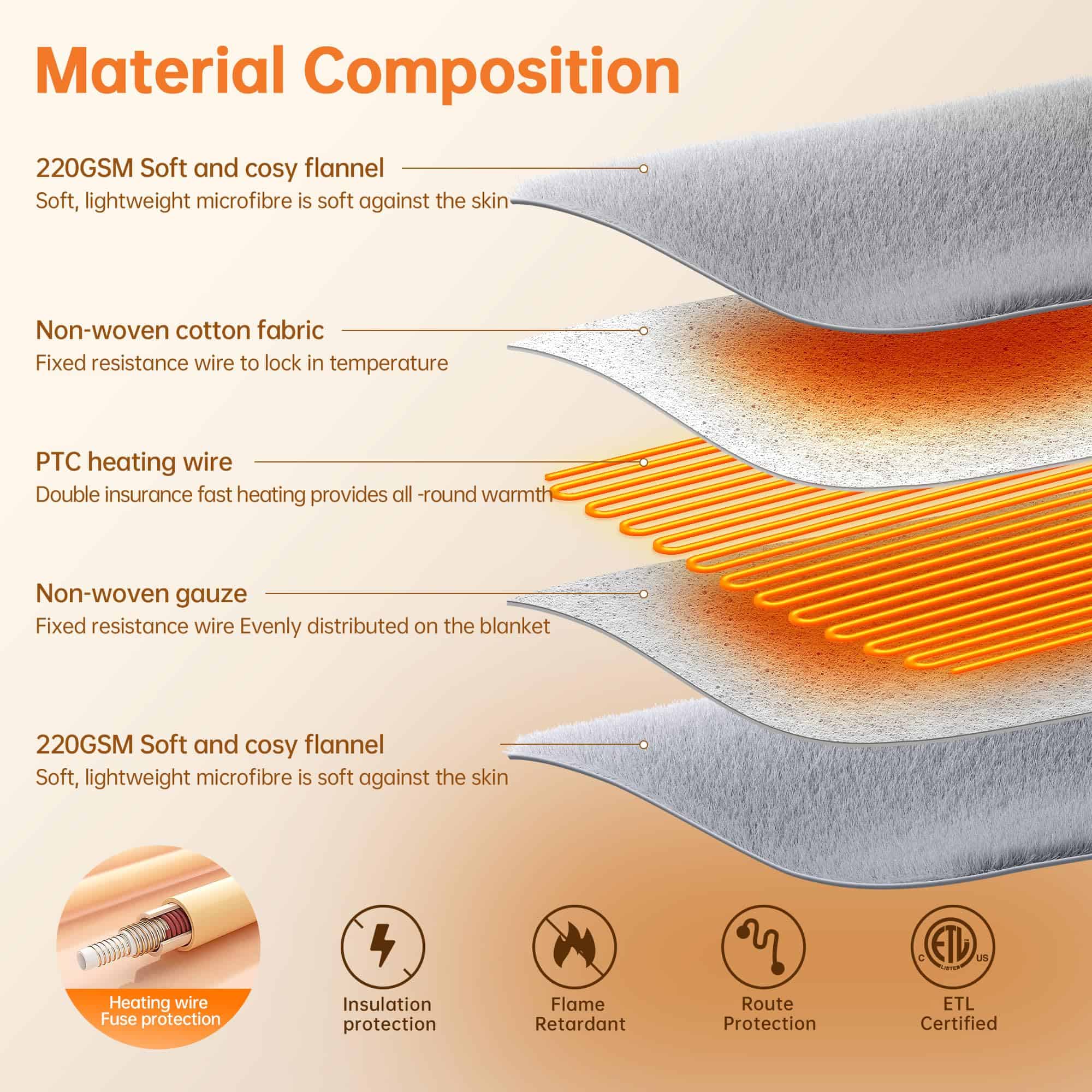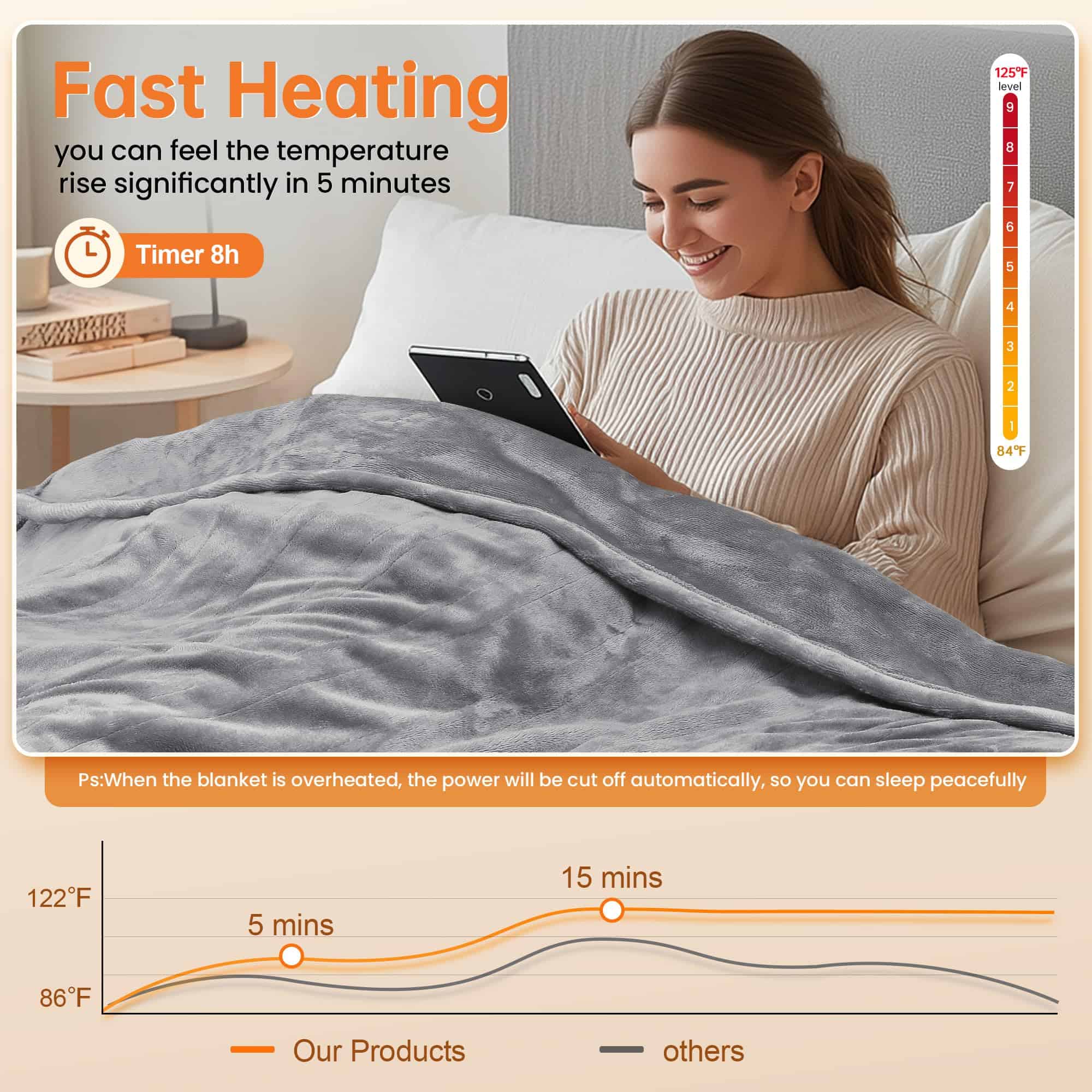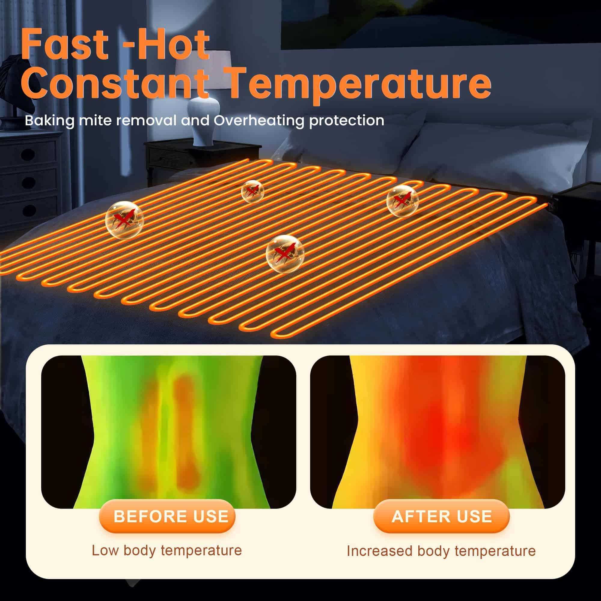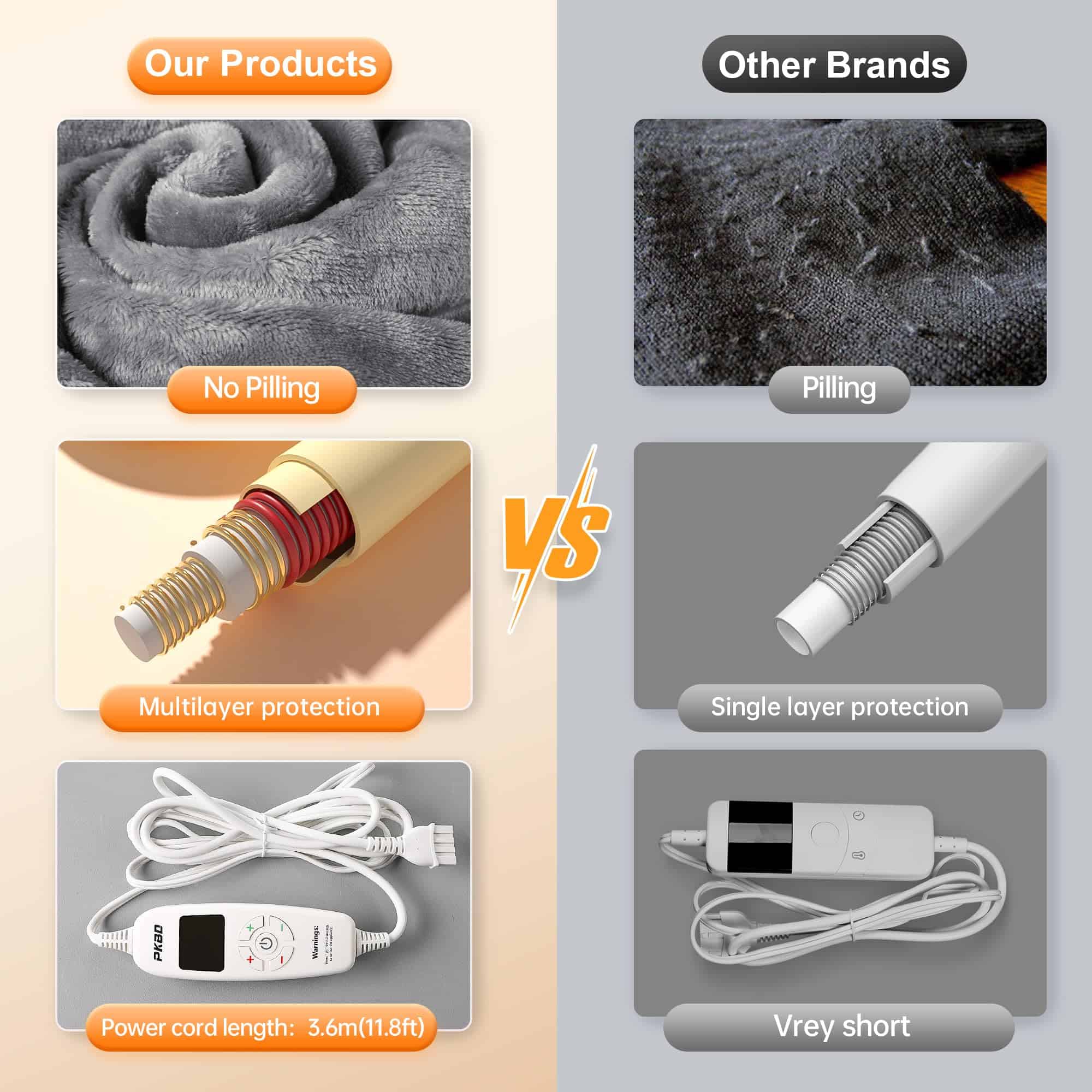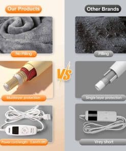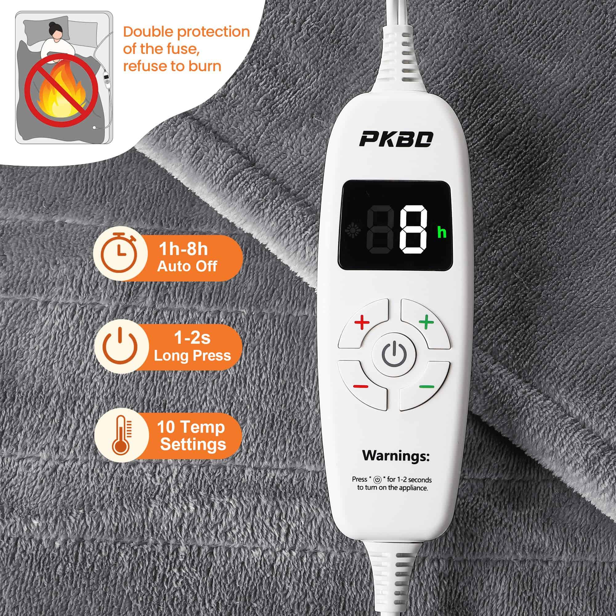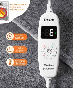Manta eléctrica PKBD de 62″ a 84″ es la solución perfecta para mantenerte abrigado y cómodo en los días fríos. Con un tiempo de calentamiento rápido de tan solo 10 minutos, esta manta eléctrica proporciona calor instantáneo para que puedas relajarte y disfrutar de momentos acogedores en casa. La versatilidad es una de sus principales características, ya que cuenta con 10 niveles de temperatura ajustables y un temporizador de apagado automático de 8 horas, permitiéndote personalizar tu calidez y garantizar tu comodidad en todo momento. Fabricada con franela de alta calidad de doble cara, la manta ofrece una calidez y comodidad excepcionales, incluso antes de que empiece a calentarse. La tela suave y duradera no se desprende y los cables calefactores pasan desapercibidos, asegurando una experiencia acogedora y sin interrupciones. Además, la manta está equipada con tecnología avanzada de protección contra sobrecalentamiento PTC, lo que la hace segura de usar. Se apaga automáticamente para prevenir el sobrecalentamiento, proporcionándote una experiencia de uso sin preocupaciones. Con un fácil cuidado y mantenimiento, esta manta eléctrica es lavable a máquina después de quitar el cable de alimentación. Sigue las instrucciones del manual de usuario para garantizar su durabilidad y seguridad. No te preocupes por la calidad, ya que ofrecemos un excelente soporte al cliente para cualquier inquietud que puedas tener.