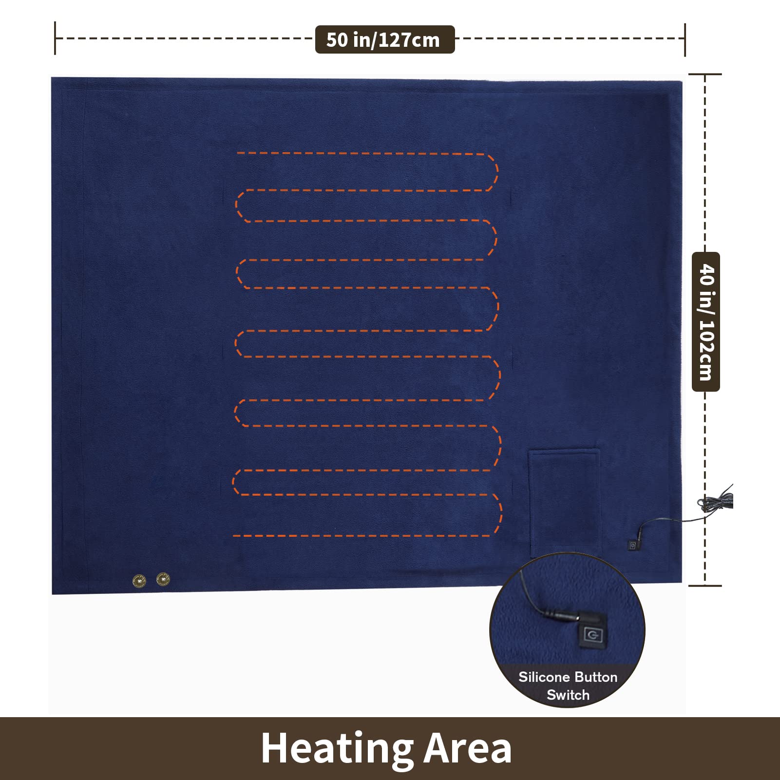 4. Diseño conveniente de bolsillo y botón: Esta manta eléctrica de 50″ W x 40″ L está diseñada con dos bolsillos y 1 botón. Un bolsillo es para guardar su teléfono móvil o control remoto y otro BOLSILLO CANGURO calienta su mano. El botón evita que la manta se deslice hacia abajo cuando la coloca sobre sus hombros.