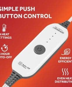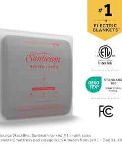La Manta Eléctrica Sunbeam Soft, Warm, Flannel Heated Throw te envuelve en calidez en noches frías. Envuélvete en el tejido de franela cómodo y acogedor que te mantiene calentito mientras te relajas en casa. Este elegante color gris es una excelente adición a cualquier decoración, convirtiendo esta manta eléctrica de 50″ x 60″ en un gran complemento para tu sofá, cama o silla favorita. La manta cuenta con un controlador fácil de usar con 4 ajustes de calor, para que encuentres tu temperatura perfecta. Incluye una función de apagado automático de 4 horas para mayor seguridad y tranquilidad. Los cables calefactores premium están diseñados con tecnología avanzada para garantizar una distribución continua y segura del calor. Cuando esté listo para limpiar, simplemente desconecta el controlador de la manta y colócalo en la lavadora y secadora para un cuidado fácil, se mantiene suave lavado tras lavado. Sunbeam es una marca estadounidense con más de 125 años de historia en electrodomésticos eléctricos para el hogar. Todos los productos de ropa de cama eléctrica de Sunbeam están certificados por ETL.