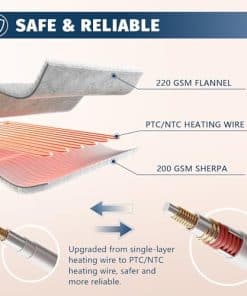 ETL & FCC CERTIFICADO: La manta calefactora de BOMOVA ha pasado la Prueba UL y posee la Certificación ETL & FCC, lo que significa más seguridad y menor radiación electromagnética al calentar la manta tamaño king. Además, la protección contra sobrecalentamiento (cuando la temperatura de la manta calefactora es demasiado alta, la sobretemperatura local no se calentará o se cortará la energía) de la manta eléctrica tamaño king previene posibles riesgos, asegurando que puedas disfrutar del calor de manera cómoda y segura.