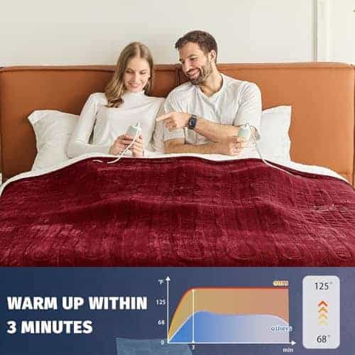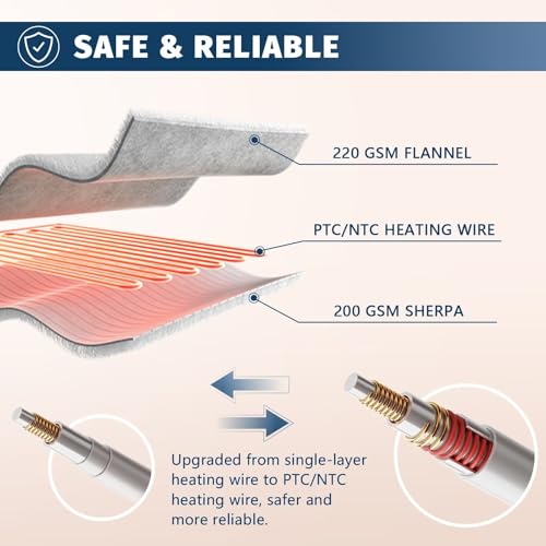 FLEXIBILIDAD Y COMODIDAD: La manta calefactora tamaño king con un cable de 14.44 pies te da más espacio para moverte, olvídate de la distancia entre el enchufe y la manta de invierno. El control dual de la manta eléctrica tamaño king es adecuado para parejas, ver televisión, leer libros, relajarse en casa en el sofá; durante el trabajo en la oficina, te brinda una experiencia de vida cálida y confortable.