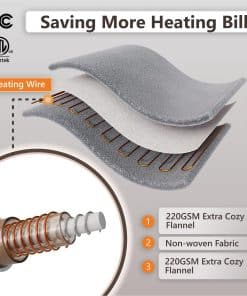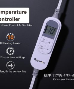 La manta eléctrica Wapaneus superior adopta un diseño de doble cara con ambos lados de franela de 220GSM, proporcionando una experiencia cálida y confortable. Equipada con 10 ajustes de calor y 12 horas de temporizador. La función de calentamiento rápido te ayuda a mantenerte acogedor y combatir el clima frío en poco tiempo. El diseño mejorado lavable a máquina facilita el mantenimiento de la manta eléctrica, extendiendo su vida útil. Simplemente retire el controlador de calentamiento y ponga la manta en la lavadora. La calidad y seguridad de la manta calefactada están certificadas por ETL, garantizando altos estándares de rendimiento y seguridad. La manta cuenta con protección contra sobrecalentamiento y protección contra cortocircuitos, brindándote tranquilidad al usar el producto. Para mantener la seguridad, no apiles mantas eléctricas y recuerda siempre apagar la energía al salir de la habitación. Además, evita cubrir el termostato con mantas eléctricas cuando estén en uso. Por favor, lee el Manual de Instrucciones cuidadosamente antes de usar el producto. Puede haber una ligera diferencia de color entre el producto real y la imagen mostrada. Si encuentras algún problema relacionado con la calidad, no dudes en contactarnos de inmediato. Estamos comprometidos a proporcionar una solución satisfactoria en 24 horas.