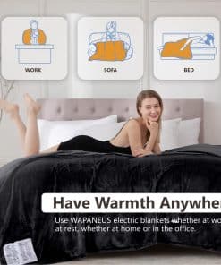 Manta eléctrica Wapaneus 72″ x 84″ tamaño -Negro