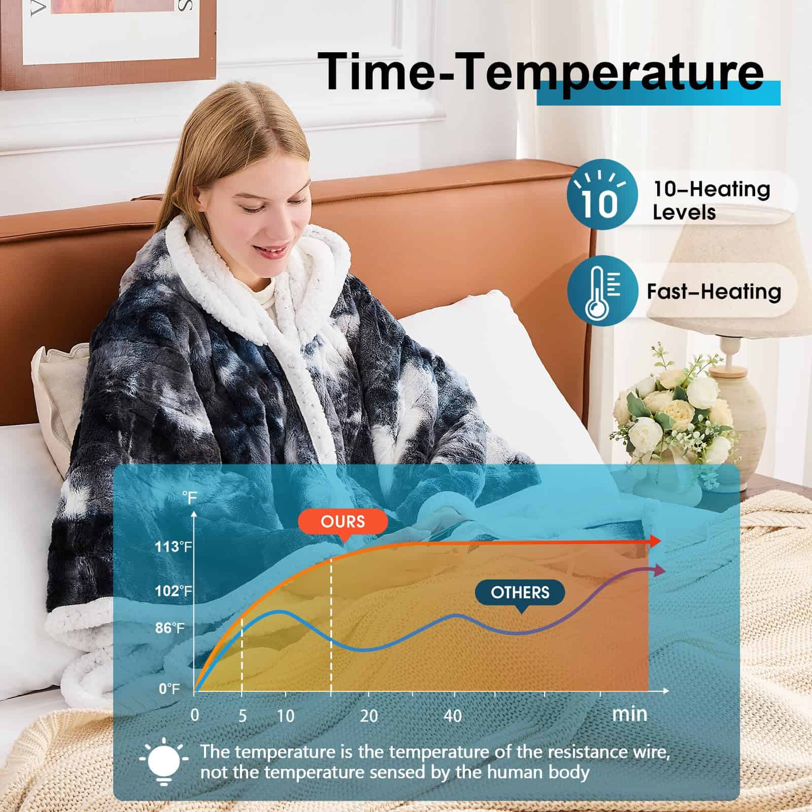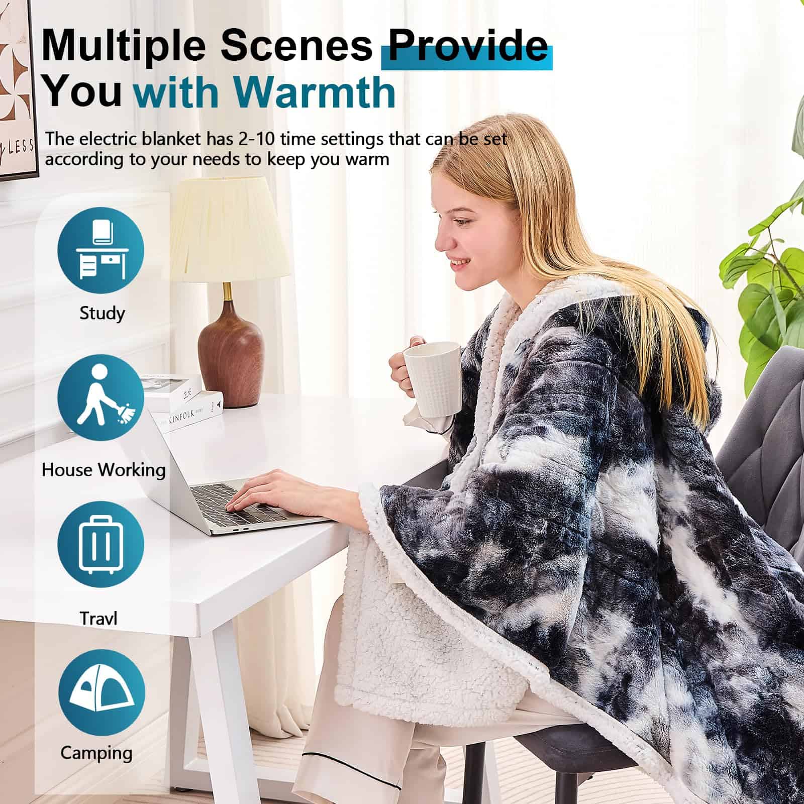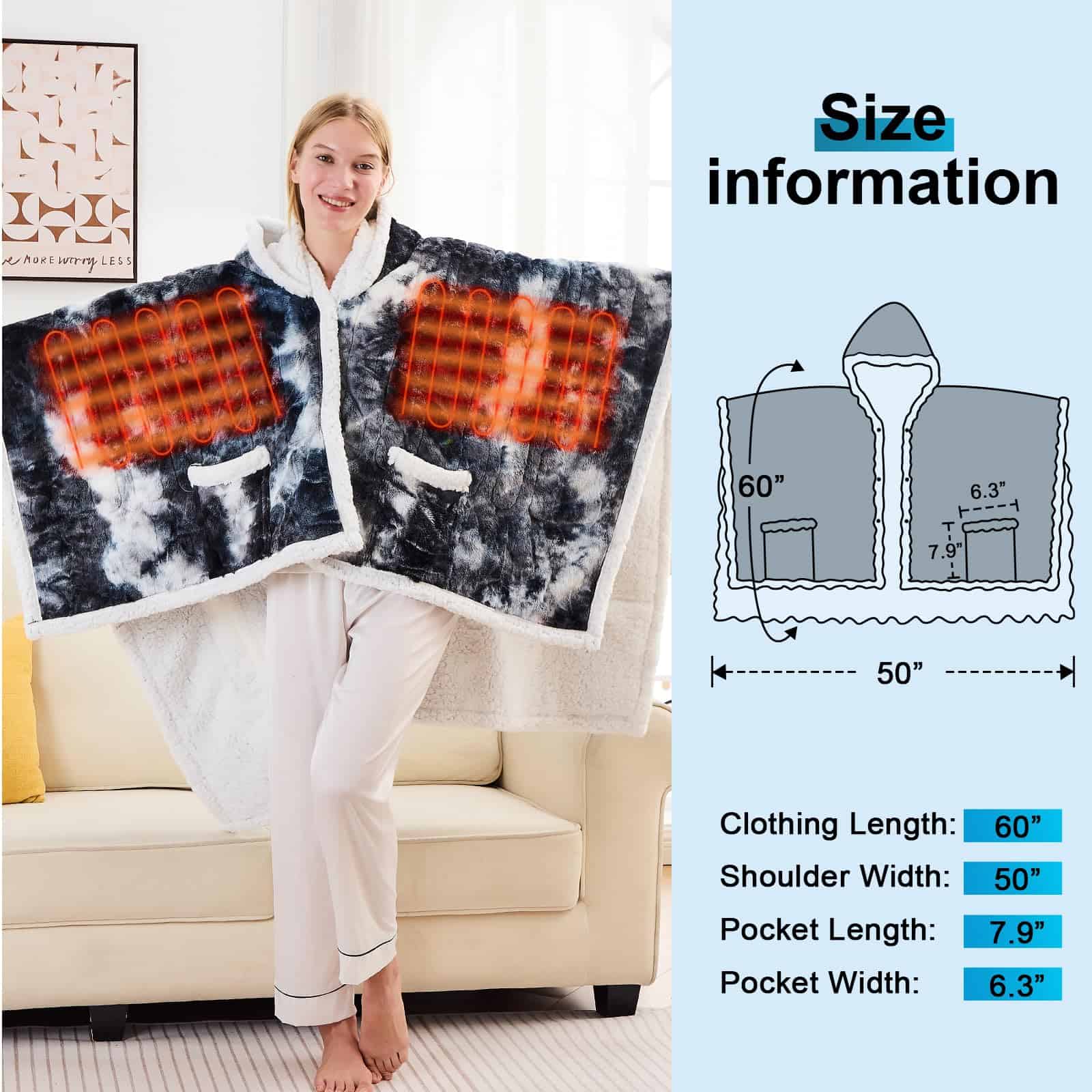 Manta Eléctrica Wearable con Calefacción – Chal con Capucha