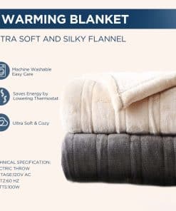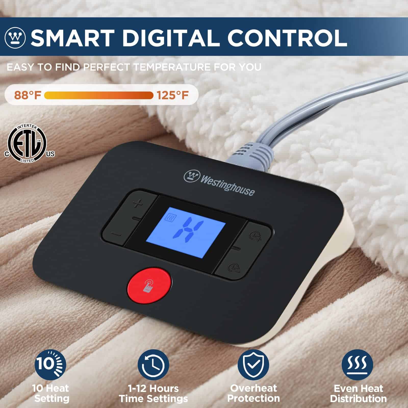 1. Calor Rápido y Consistente – La manta eléctrica Westinghouse cuenta con alambres calefactores de alta calidad, distribuidos de manera densa y uniforme por toda la manta. Esto asegura un calentamiento rápido y un calor reconfortante constante. 2. Tela Suave y Acogedora – Nuestra manta calefactora cuenta con un diseño de doble cara. Un lado está fabricado con franela ultra suave y sedosa, mientras que el otro cuenta con felpa sherpa acogedora para calidez y excelente aislamiento. 3. Operación y Limpieza Fáciles – Nuestra manta calefactora cuenta con un controlador fácil de usar con ajustes de temporizador de 12 horas y 10 niveles de calor. Para una limpieza fácil, simplemente desenchufe el controlador y lave la manta en la lavadora. Siempre apague y desenchufe cuando no esté en uso. El apagado automático está diseñado para complementar el apagado manual. 4. Seguridad Confiable – Nuestra manta calefactora cuenta con un sistema de protección contra sobrecalentamiento para garantizar tu seguridad. También está certificada por ETL y FCC, brindando tranquilidad mientras disfrutas de su cálido confort. Duerme tranquilo sabiendo que tu seguridad es una prioridad. 5. Uso Versátil – La manta eléctrica Westinghouse es perfecta para usar en casa, en la oficina, en la cama, en el sofá y más. Disfruta de su calor y confort donde sea que lo necesites. Brindamos una buena garantía postventa. Si tienes algún problema, siempre estamos aquí para ayudarte.
