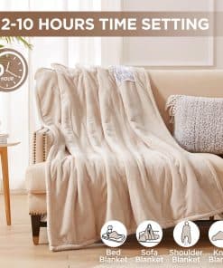 Controlador cuenta con Ajuste de Tiempo de 2-10 Horas, 6 Niveles de Calefacción para Necesidades Individuales. Diseño de memoria de calefacción y distribución uniforme de calor para un mejor disfrute. LAVADO EN FRÍO Y FÁCIL CUIDADO Desenchufe el controlador antes de lavar, lavado a máquina en frío o lavado a mano. Secar en línea o en secadora a fuego lento, fácil y conveniente. NO use si está mojado. MATERIAL PREMIUM Doble capa de Franela de 200 GSM, ambas capas aportan una mejor sensación de suavidad. Manta Térmica de Tiro de 50×60 pulgadas, fácil de almacenar o transportar. APLICACIÓN Y ESCENAS Adecuada para uso individual, ver televisión, leer libros, relajarse en el sofá o en el sofá en casa, brindándole una experiencia de vida cálida y cómoda. SERVICIO POST-VENTA La Manta Eléctrica de Calefacción Westinghouse ofrece servicio post-venta, si tiene alguna pregunta o inquietud sobre el producto, por favor contacte a nuestro personal de atención al cliente para obtener ayuda.