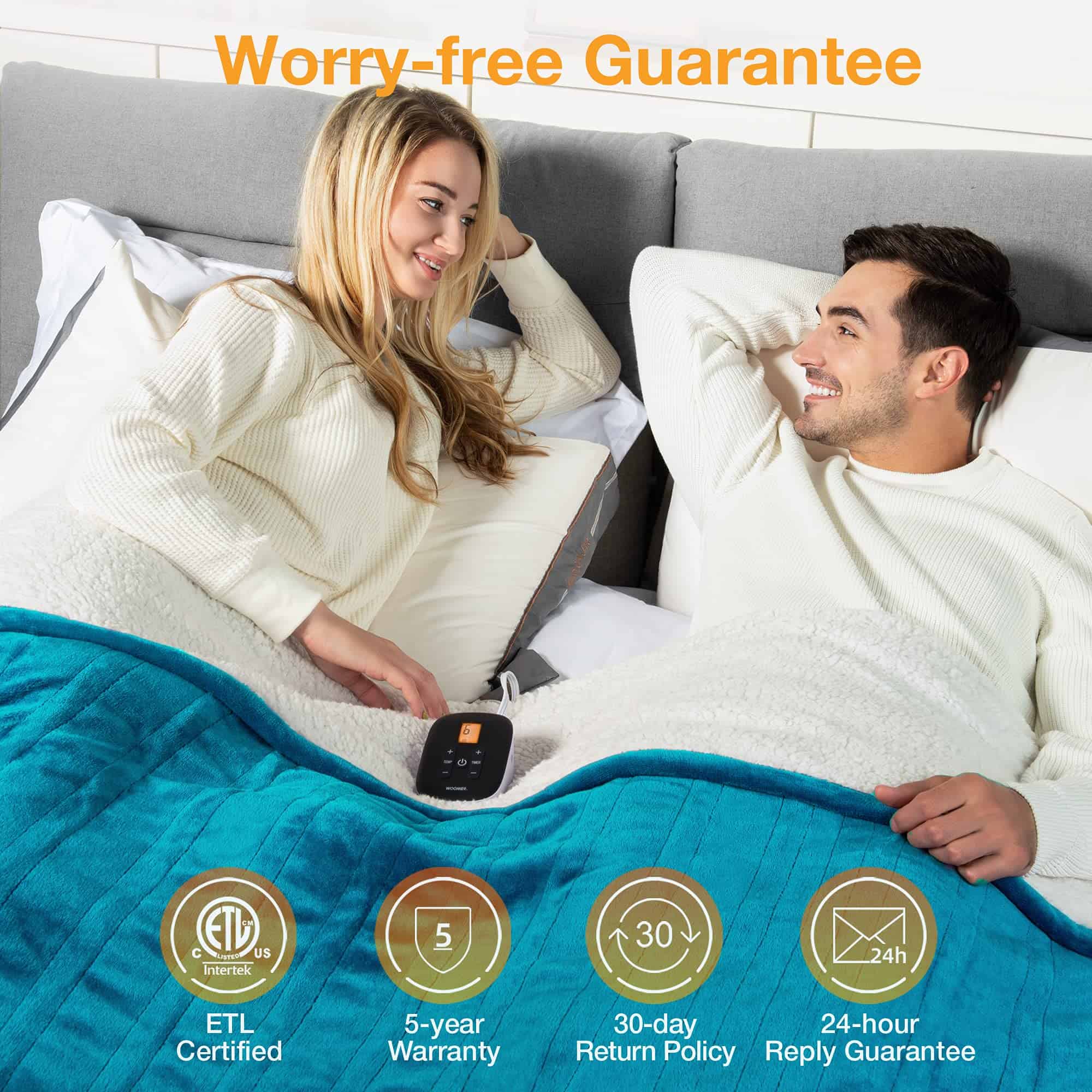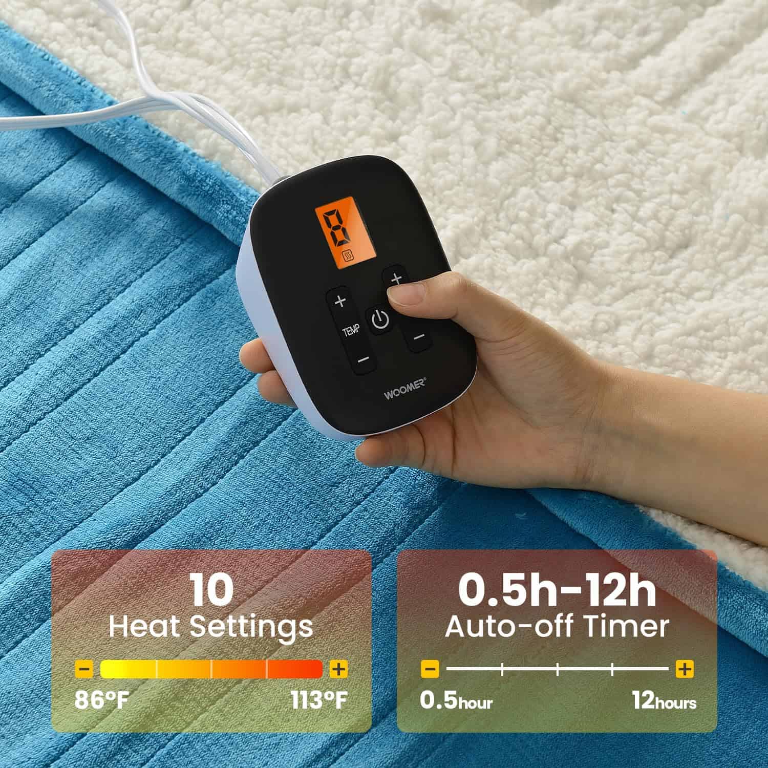 1. Materiales de Doble Cara de Primera Calidad: Fabricada con una mezcla de franela y sherpa, esta manta eléctrica tamaño individual (62 x 84 pulgadas) cuenta con un diseño delgado y transpirable con un pelaje corto de 4 mm. Su tacto suave y liso contra la piel garantiza una máxima acogida. 2. Calor y Temporizador Ajustables: Seleccione fácilmente entre 10 niveles de calor (86 F a 113 F) utilizando el controlador. Configure un temporizador de 0.5 a 12 horas para obtener calor personalizado. El cable de 19 pies garantiza máxima flexibilidad. 3. Tecnología de Calefacción Eficiente: Nuestra manta eléctrica tamaño individual (62 x 84 pulgadas) cuenta con cables de calefacción en forma de U innovadores para una distribución uniforme del calor. Manténgase cómodamente cálido en cualquier temporada. 4. Seguridad Garantizada: Certificada por ETL por su seguridad, nuestra manta eléctrica Woomer incluye protección contra sobrecalentamiento y un temporizador de apagado automático para un sueño sin preocupaciones. 5. Compra Sin Problemas: Disfrute de un servicio postventa fiable y cálido en nuestra manta eléctrica, con aseguranzas de respuestas rápidas a todas las consultas.