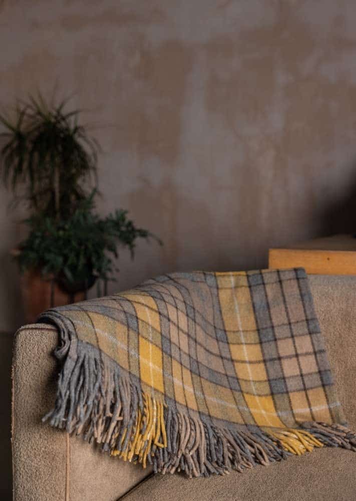 Manta de tartán de lana 100% Esta manta de lana pura al 100%, con borlas en los extremos, es muy suave y cálida. Puede ser abrazada en noches frías, colocada sobre tus pies frente al televisor, utilizada para picnics o como manta de viaje y también sería un excelente regalo de inauguración de la casa. Hecha en Escocia por un fabricante especialista en lana. Dimensiones: 152 x 177 cm ¡Disponible en varios otros tartanes! Visita nuestra tienda para más productos de kilt y otros regalos escoceses.