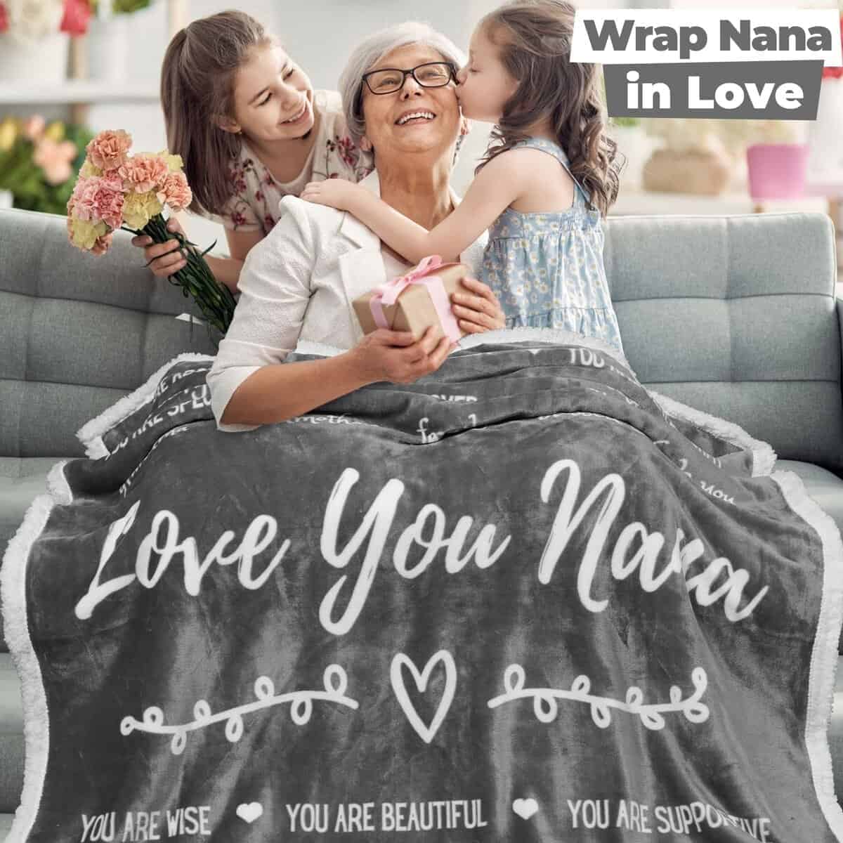5. Un Abrazo de Cuidado Cuando No Puedes Estar Presente: No siempre podemos estar con nuestras Nanas todos los días, pero con su propia manta, puede estar envuelta en tus palabras y sentimientos amorosos, cada día.