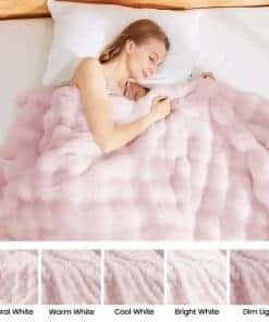 Nuestra manta acogedora de burbujas es un maestro de mezcla de grosor y densidad, ofreciendo un calor profundo que es tanto notable como reconfortante. Diseñada para aquellos que valoran el aislamiento sustancial sin sacrificar la comodidad, esta manta es el epítome del calor y la comodidad, asegurando que permanezcas abrigado en cualquier clima. Nuestra manta de piel sintética ejemplifica durabilidad, elaborada para resistir la prueba del tiempo y mantener su condición prístina incluso después del lavado. Sus fibras resistentes y su construcción robusta garantizan que la manta conserve su suavidad original, su esponjosidad y su calidez, permitiéndole lucir y sentirse como nueva en cada uso. Soft bubble manta de piel de conejo sintético ofrece comodidad versátil para cualquier entorno. Ideal para abrazarse en el sofá, añadir calor a tu cama o realzar el estilo de tu sala de estar, sirve múltiples propósitos con elegancia y facilidad atemporales. Esta manta de burbujas de piel sintética también es un regalo ideal para la familia o amigos. Con su textura suave y diseño exquisito, puede servir como un regalo considerado y precioso para cualquier ocasión especial. No es solo una manta, sino un gesto cálido y alegre destinado a llevar un toque de elegancia y comodidad a la vida de seres queridos y miembros de la familia.