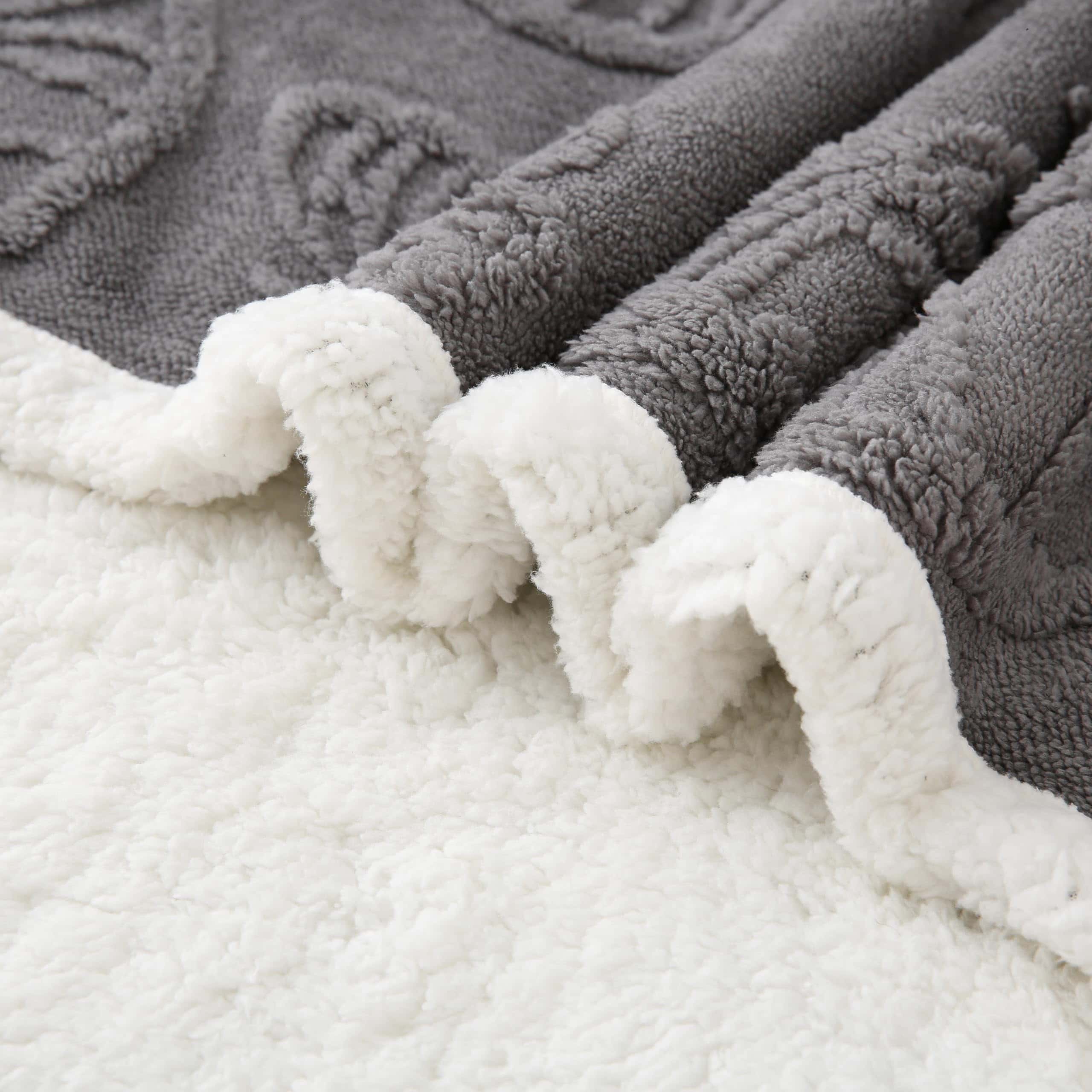 1. SUPER SUAVE Y CÁLIDA: La Manta de Sherpa Fleece está hecha de felpa jacquard de 240GSM en un lado y sherpa fleece super suave de 220GSM en el lado reverso, esta manta de doble cara de buena calidad es peluda, esponjosa y ultra acogedora para un confort elegante durante todo el año.