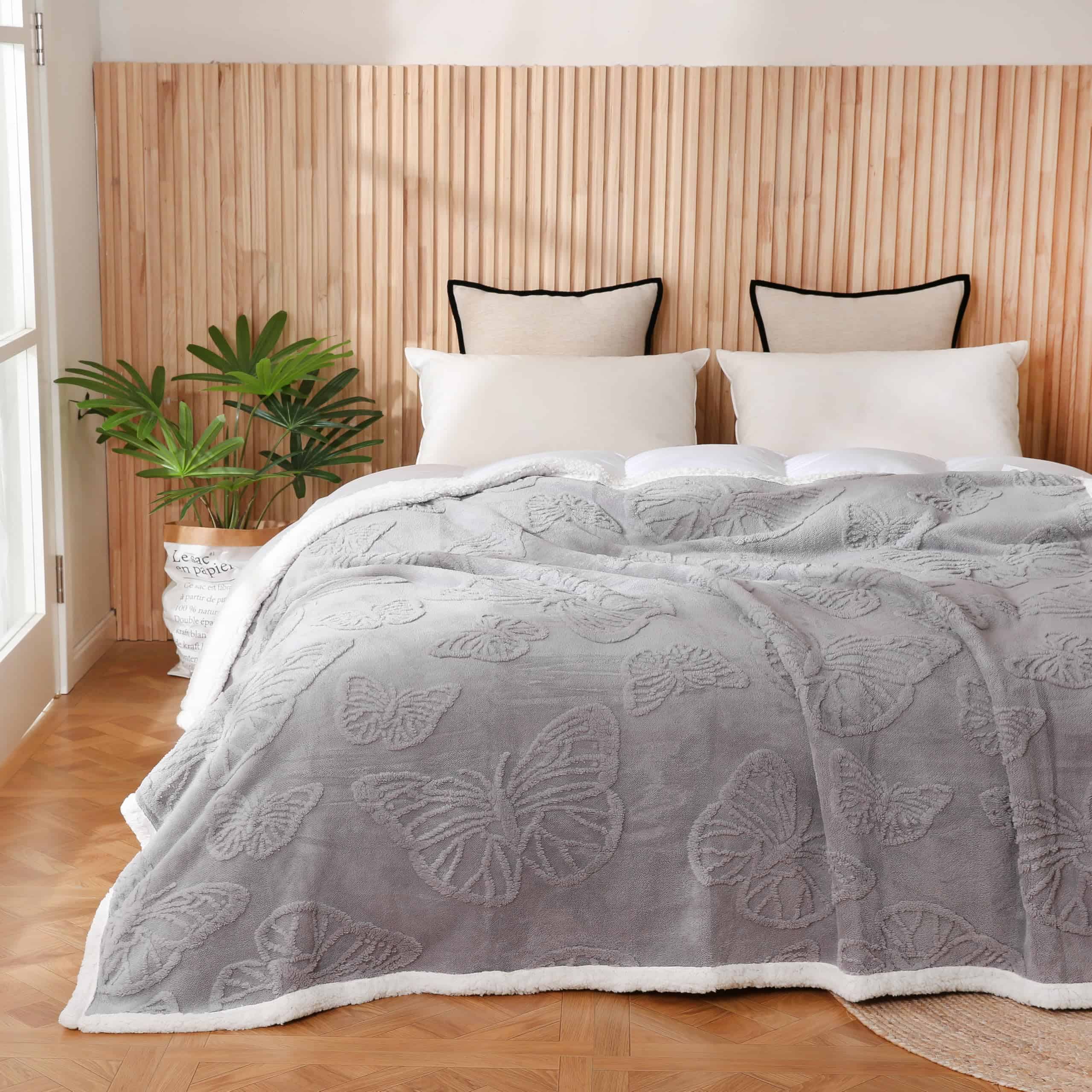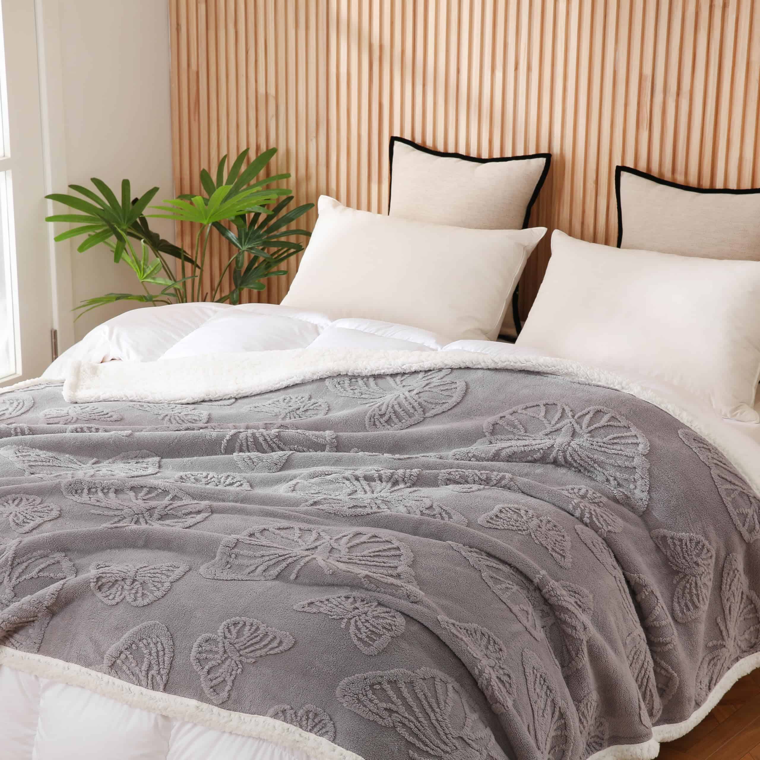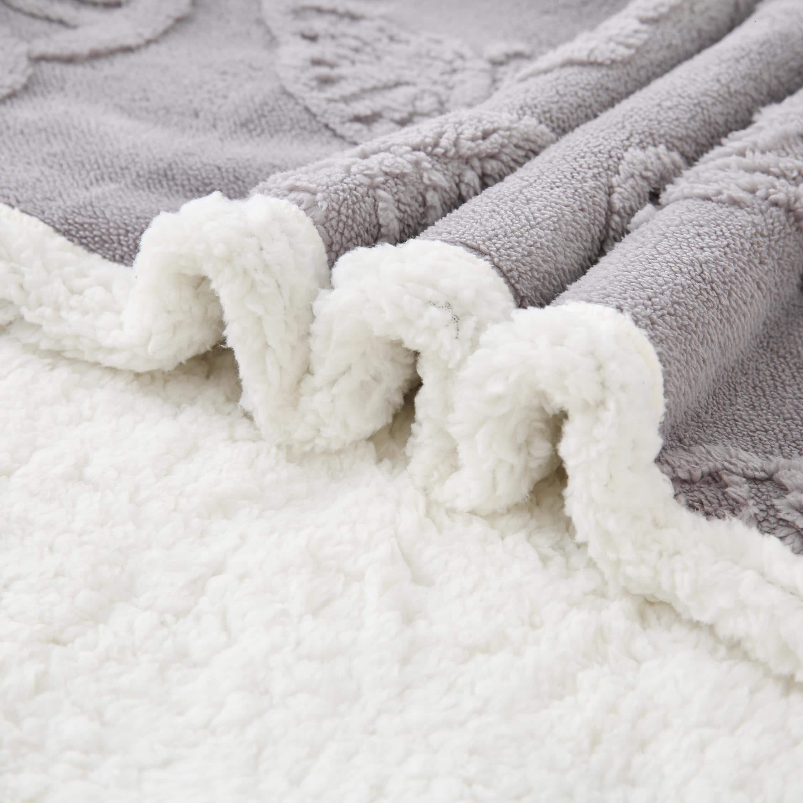 1. SUPER SUAVE Y CÁLIDA: La Manta de Sherpa está hecha de 240GSM felpa jacquard en un lado y 220GSM sherpa super suave en el lado opuesto, esta manta de doble cara de buena calidad es peluda, lanuda y súper acogedora para disfrutar de un confort elegante durante todo el año.