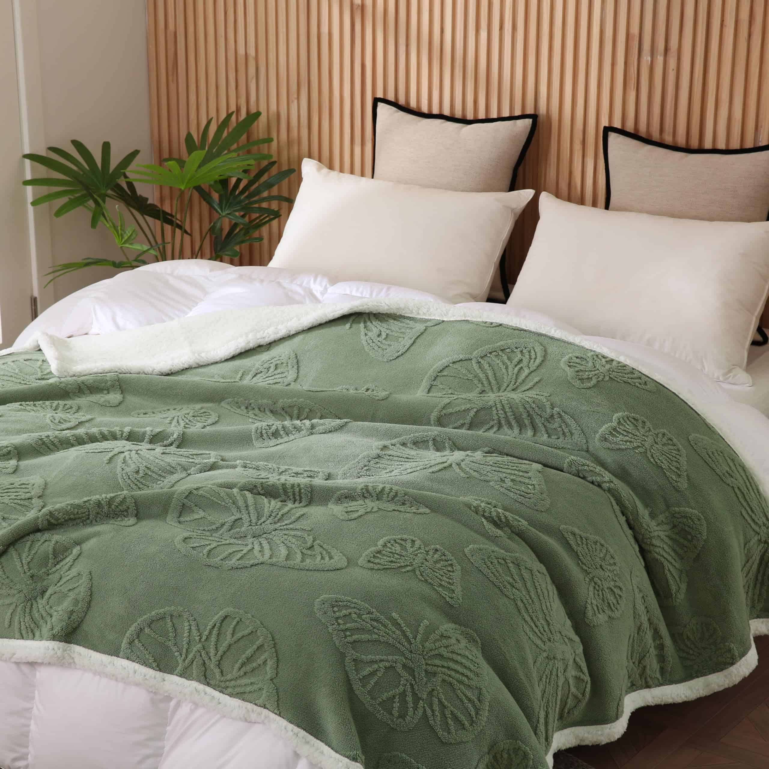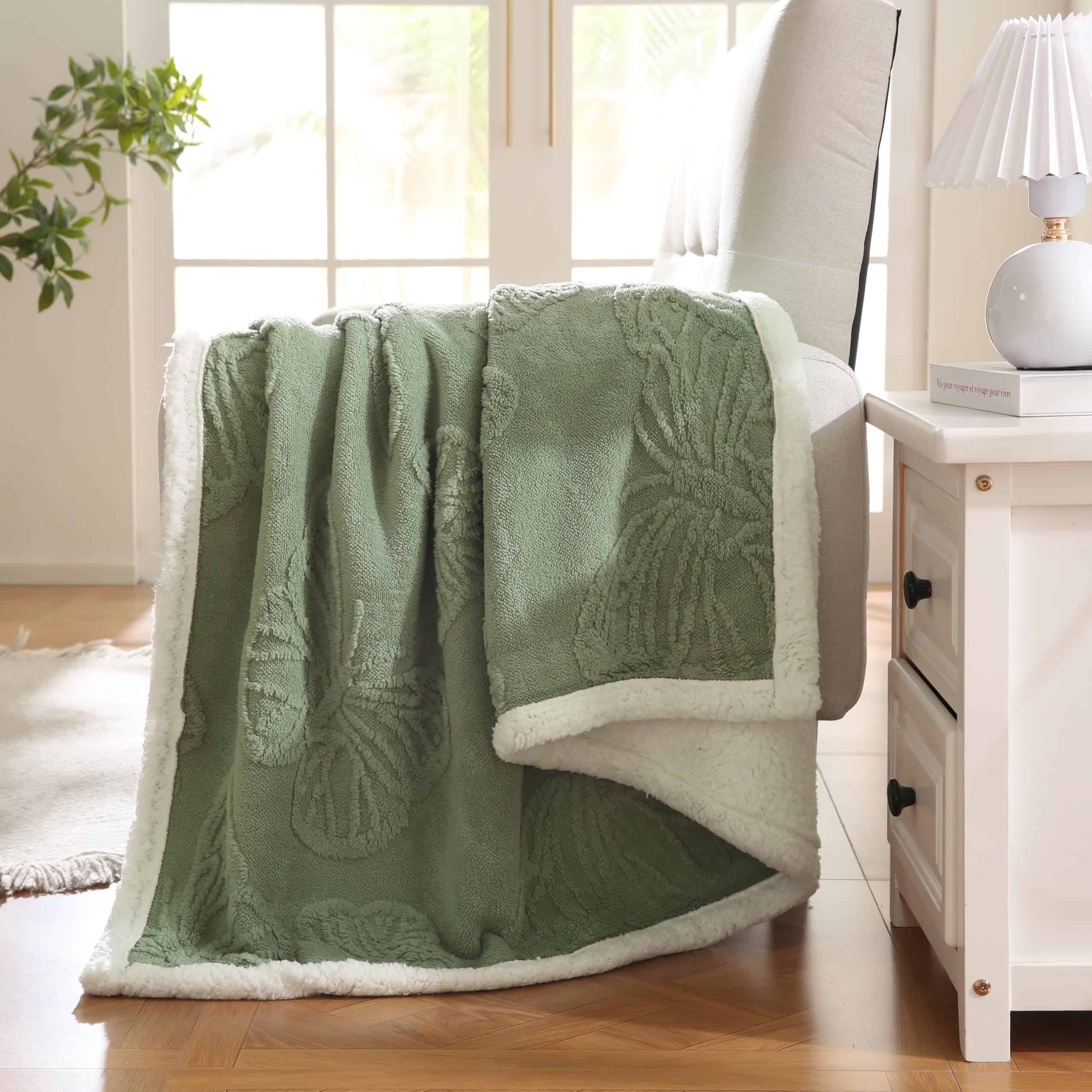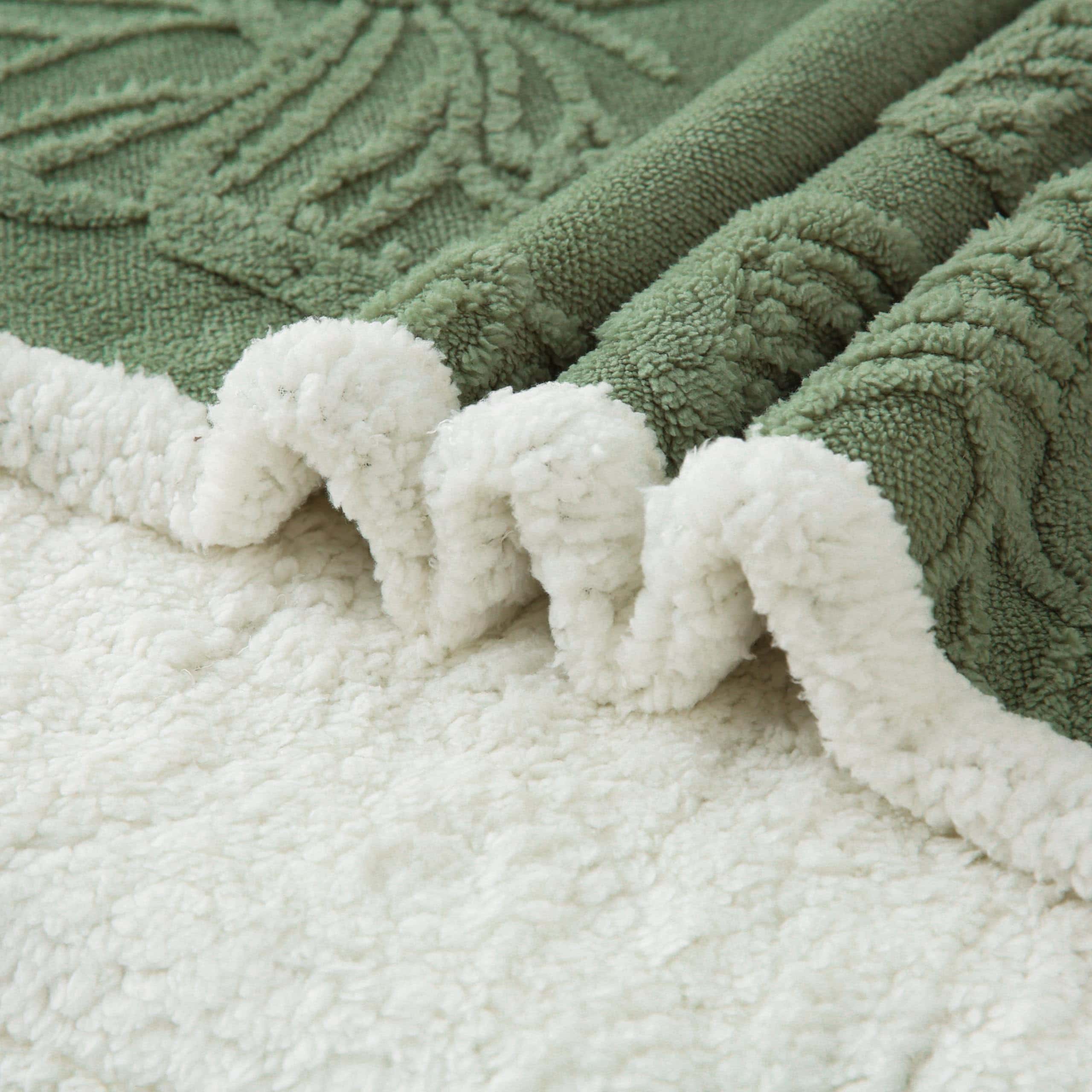1. SUPER SUAVE Y CÁLIDA: La Manta de Lana Sherpa está hecha de 240GSM de felpa jacquard en un lado y 220GSM de lana sherpa súper suave en el otro lado, esta manta de doble cara de buena calidad es peluda, lanuda y ultra acogedora para estiloso confort durante todo el año.