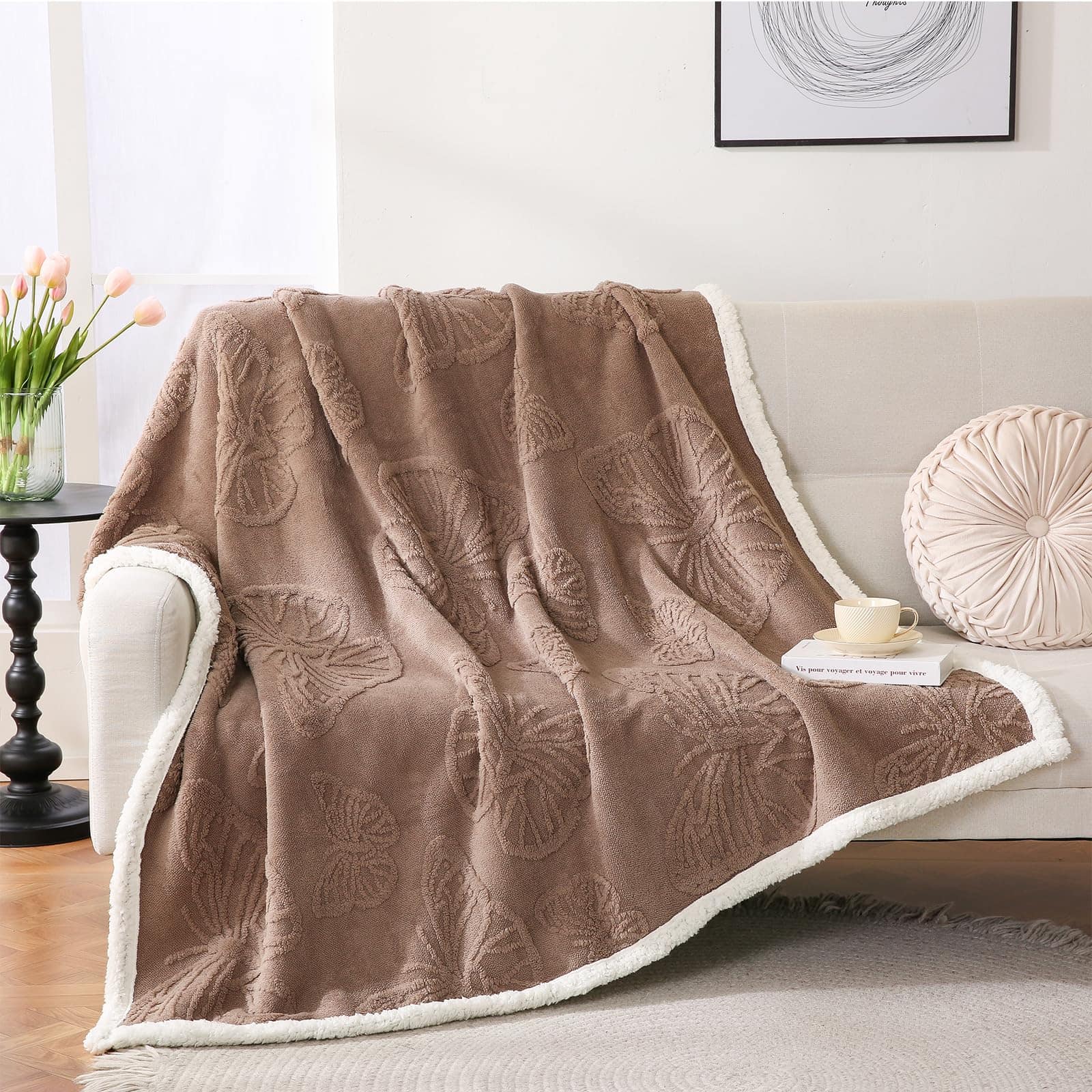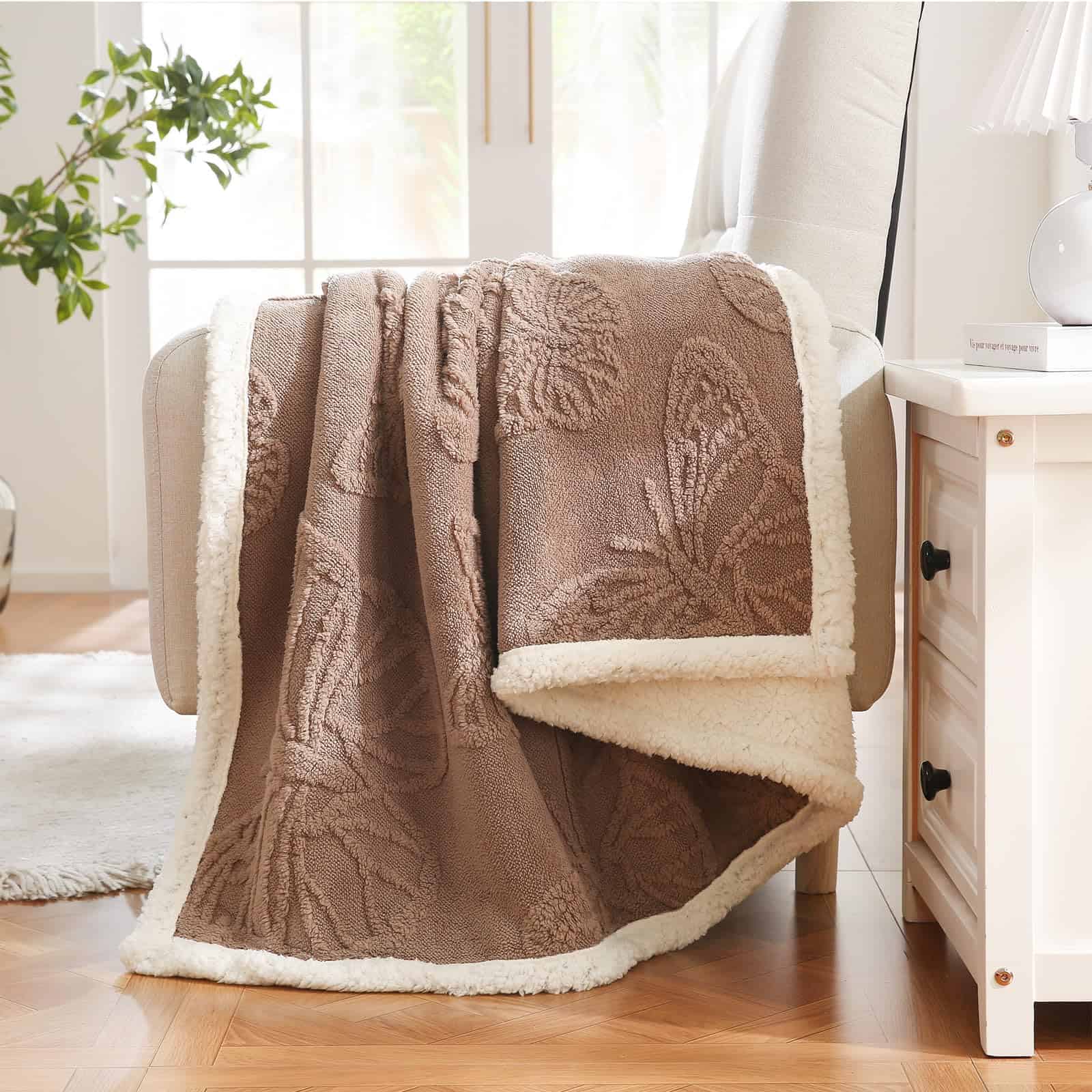 2. Aspecto glamoroso y DURABLE: La Manta de Sherpa Fleece Gracelife con un patrón de cable tuftado, esta manta gemela para el sofá agrega profundidad y encanto a la decoración de su hogar, transformando su espacio en un refugio elegante y acogedor. Además, la impresión táctil suave y peluda que le brinda una experiencia única y de buena calidad de manta.
